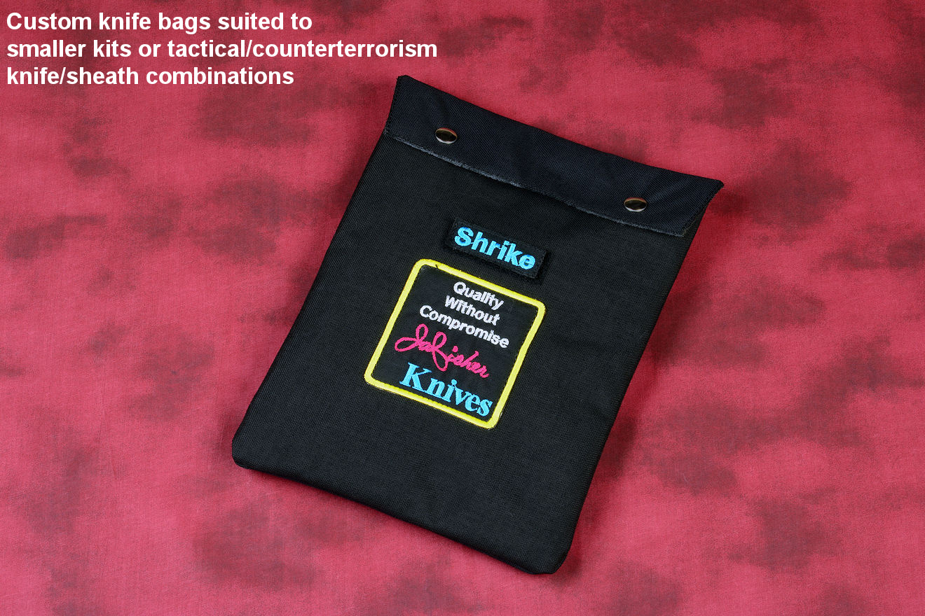 Identification and marking has improved, I now completely make and apply custom patches to the bags. Clients started requesting that I identify the knives within by the name of the knife, since some have several kits and didn't want the parts or accessories to become mixed up.