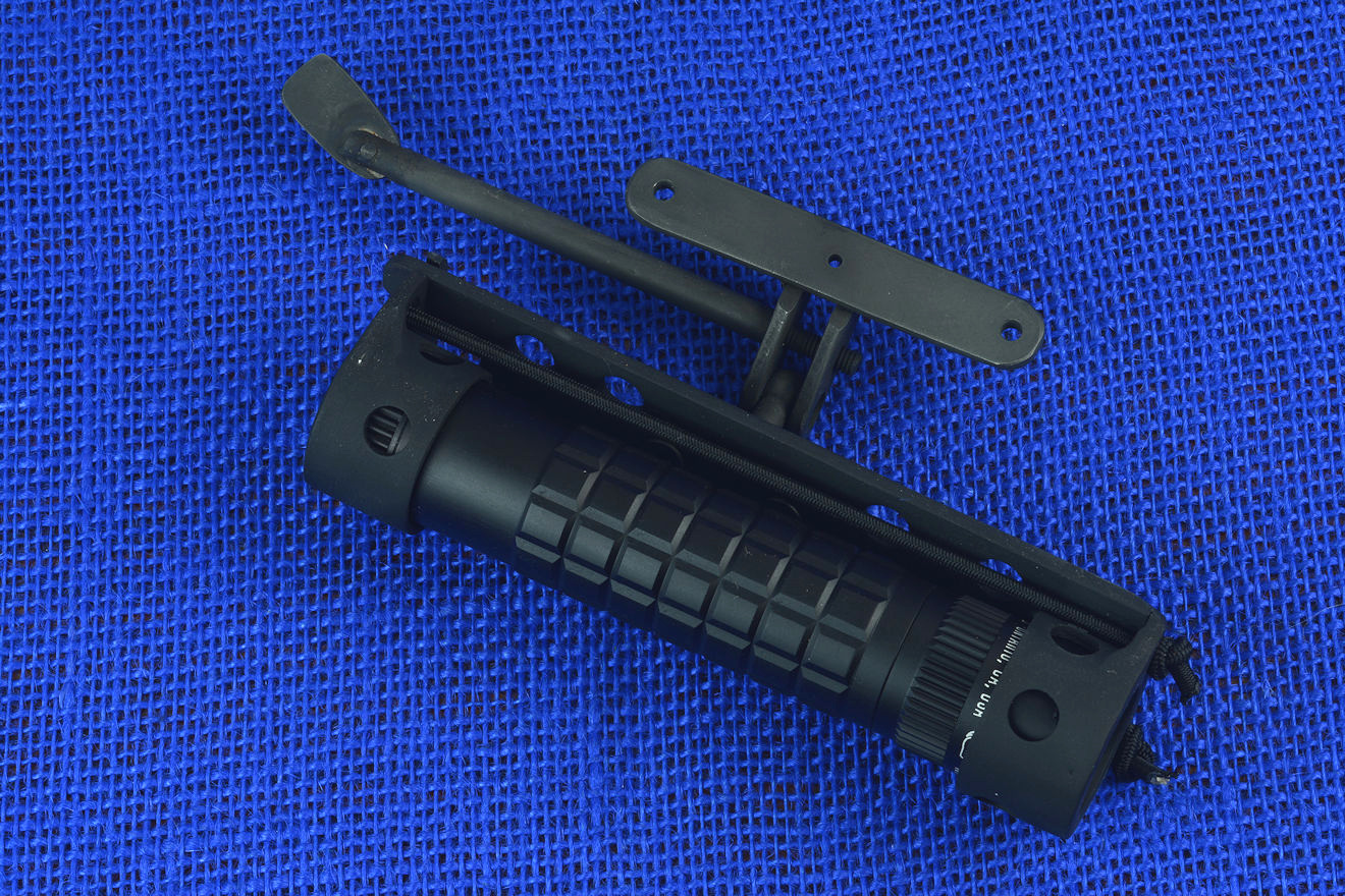 On my older page on this, I gave specific model information, type, manufacturer, and detailed all the specifications of the flashlights: lumen output, range, water resistance, battery type, all of that stuff. Flashlight technology has moved very fast in the last ten years, and there are a whole range of flashlights that have many new features, much more intense LED technology, and many new programming features have been added. Technological advances aside, the aiming and holding potential will always rely upon a simple, universal device that is operated and locked by the human hand alone. Even if a flashlight has a "candle," "strobe," "color-changing," or "dance music disco-ball" function, it will still need to be held either by a human hand or by an aiming device.