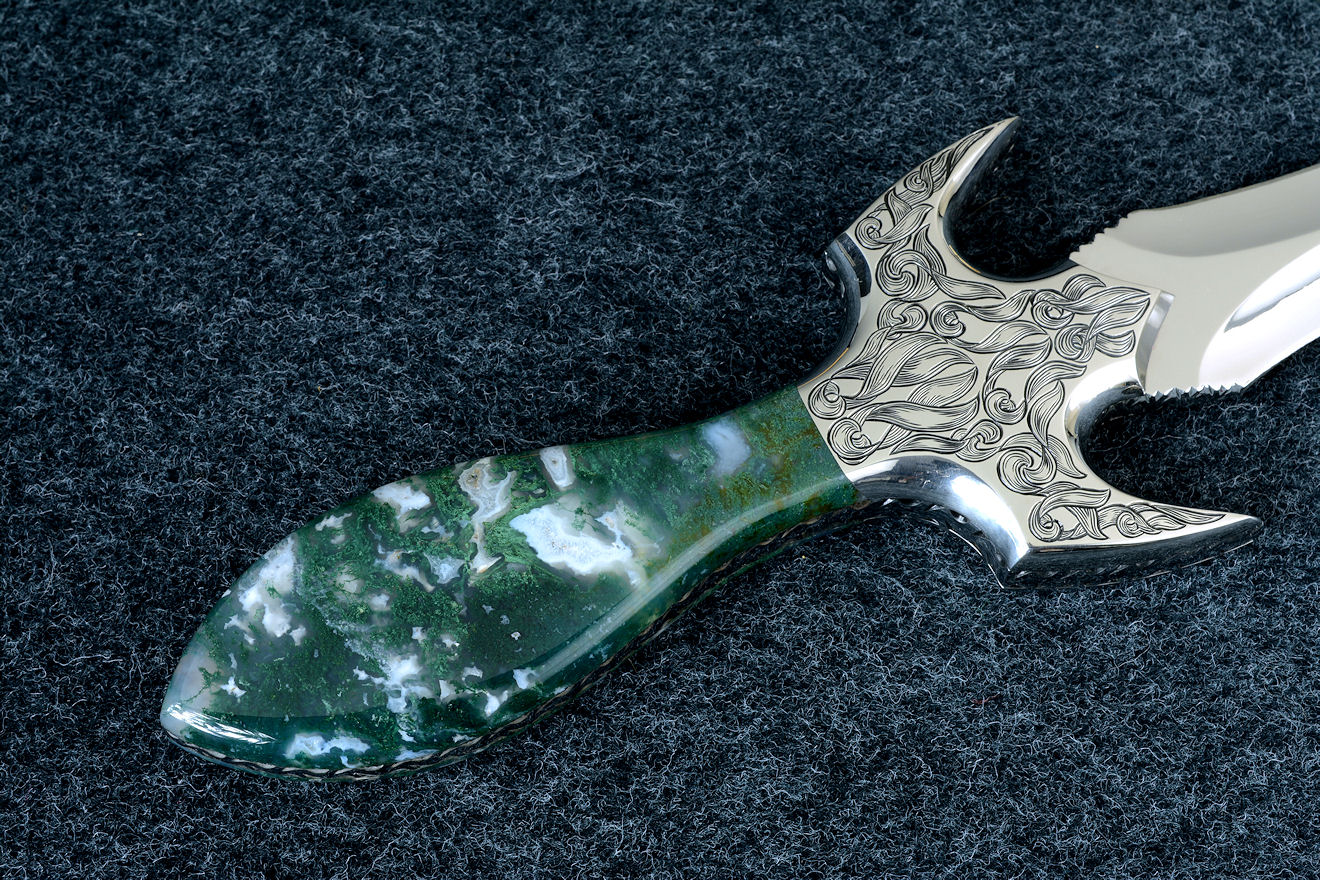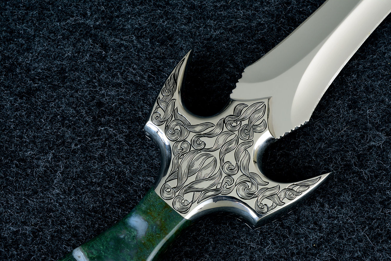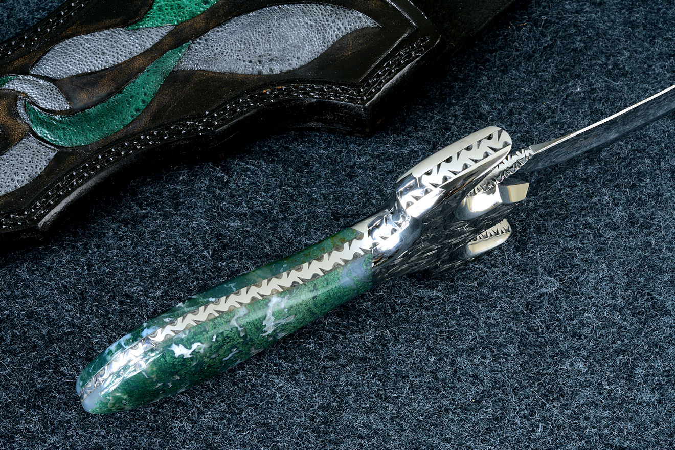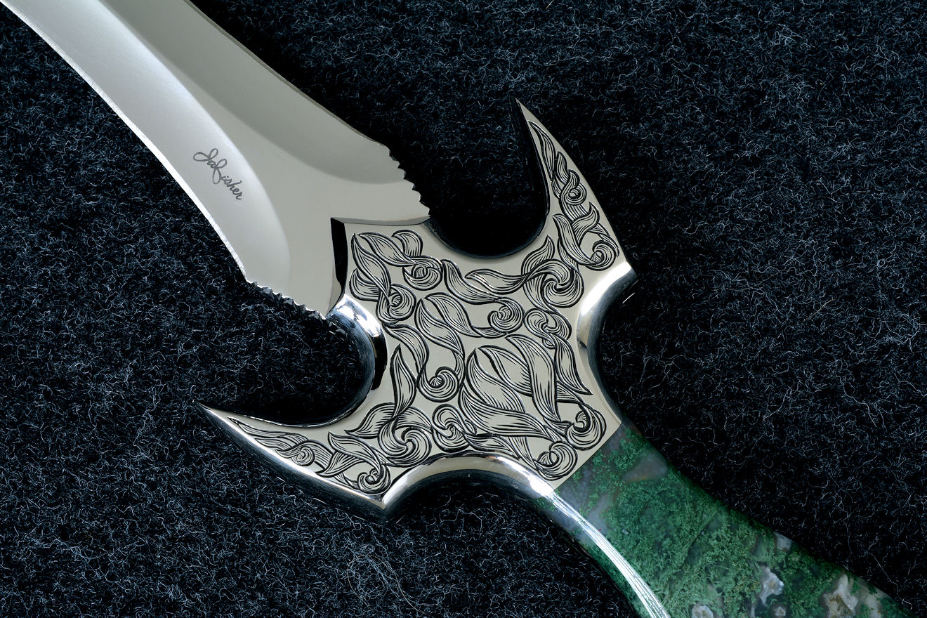 - Bolsters, Fittings: 304 Austenitic Stainless Steel, mirror polished, hand-engraved