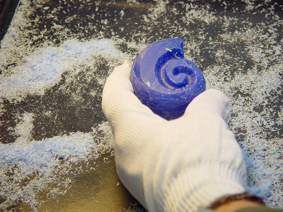 The sea creature secures the knife well, though the tentacles are thin, they are very stout and solid, and the forefinger area as well as the blade contact keep the knife secure, yet easy and quick to remove. The bronze casting is pressed onto a bronze and copper threaded stud mounted to the base, so the nautilus could be repositioned a bit to suit the taste of the owner. I knew that the form of the sculpture must be framed, for perspective, for balance, and for a harmonious display. I needed just the right form and material to establish the contrast and dark richness of the knife. I chose a backdrop of white Caribbean coral, intricate and detailed, to mount behind the bronze and blued steel. The coral is bolted to the base with a set-in, permanent keyed anchor.