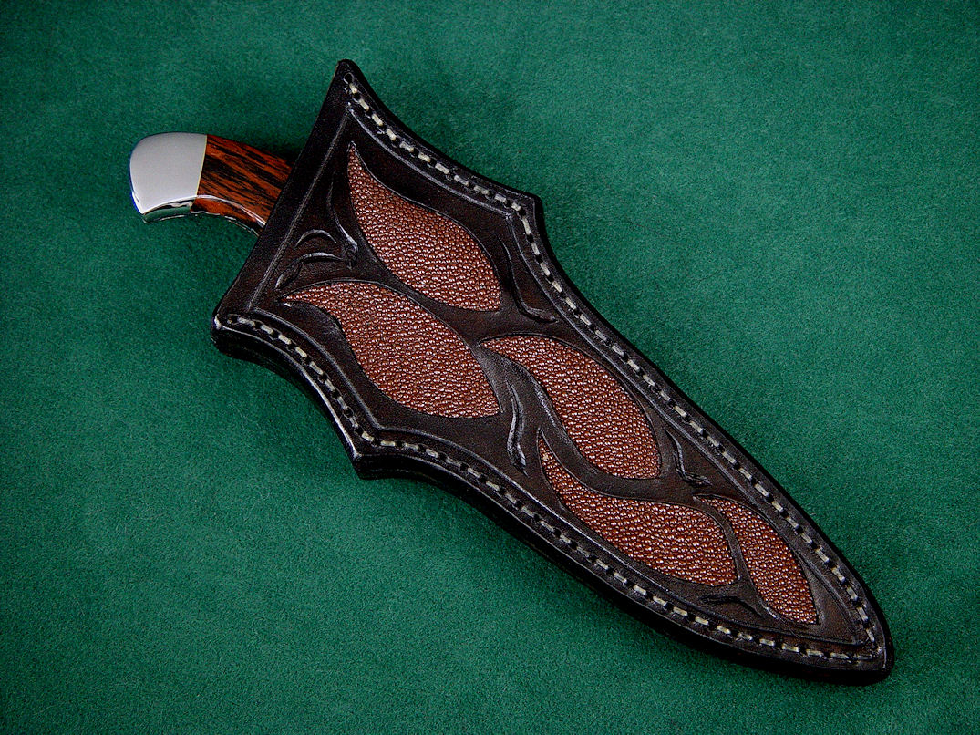 Sheath: Brown Rayskin Inlaid in Hand-Carved Leather