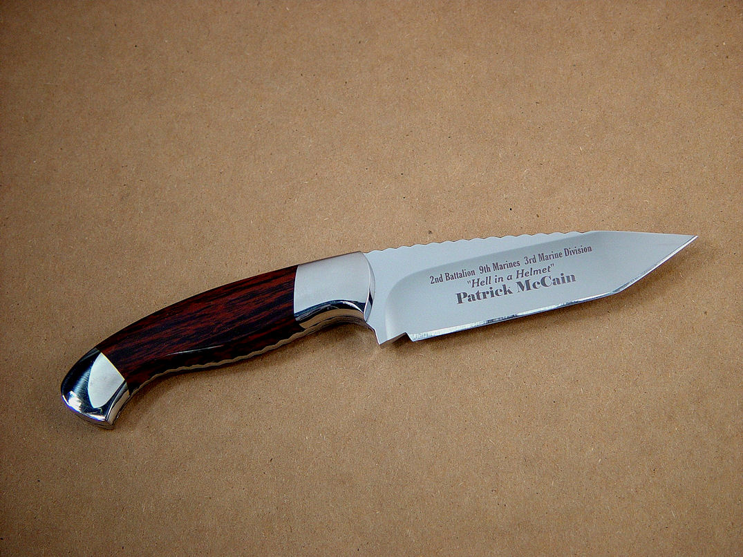 A great knife for use or collection, dedicated to a great Marine.