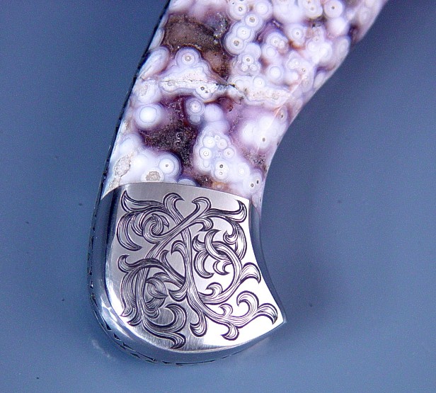 Amethyst gemstone handle, a colorful play of purple background and white