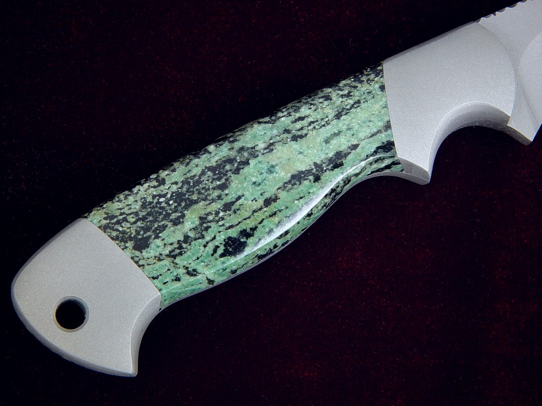 the blade. The jasper feels comfortable and smooth, and the tooth of