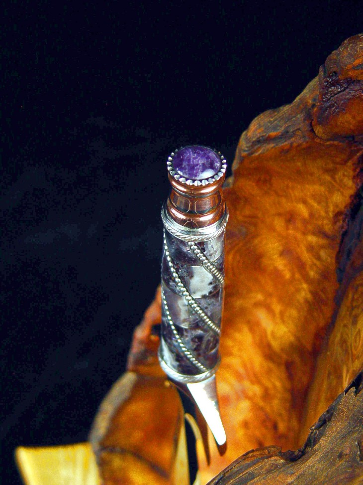 individual characteristics. The handle is Lace Amethyst gemstone spaced