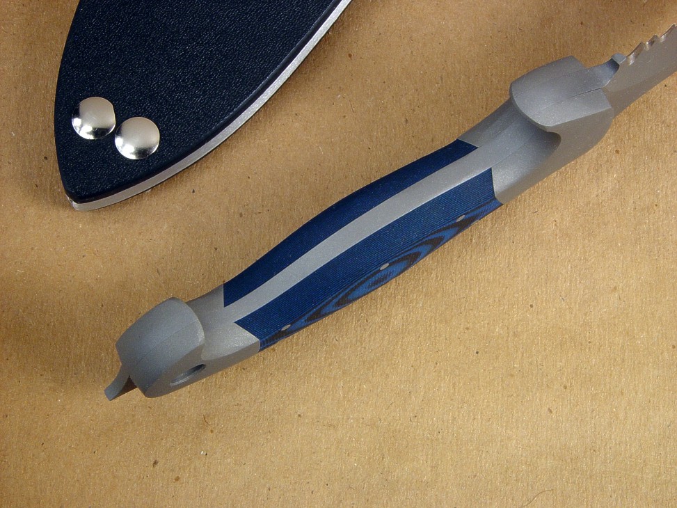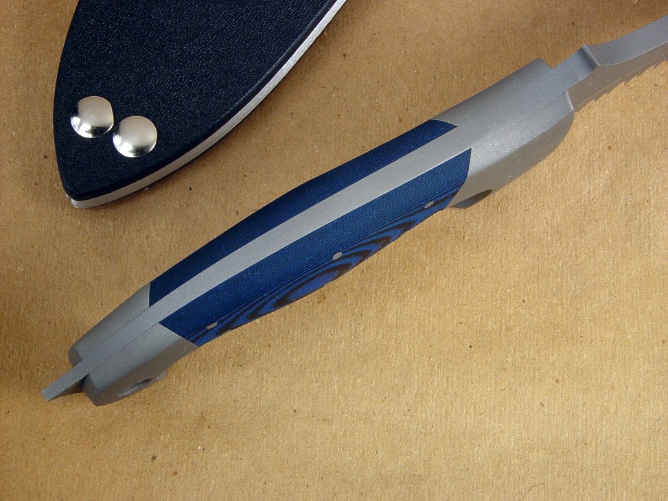 - Handle: Blue/Black G10 fiberglass-reinforced epoxy laminate
