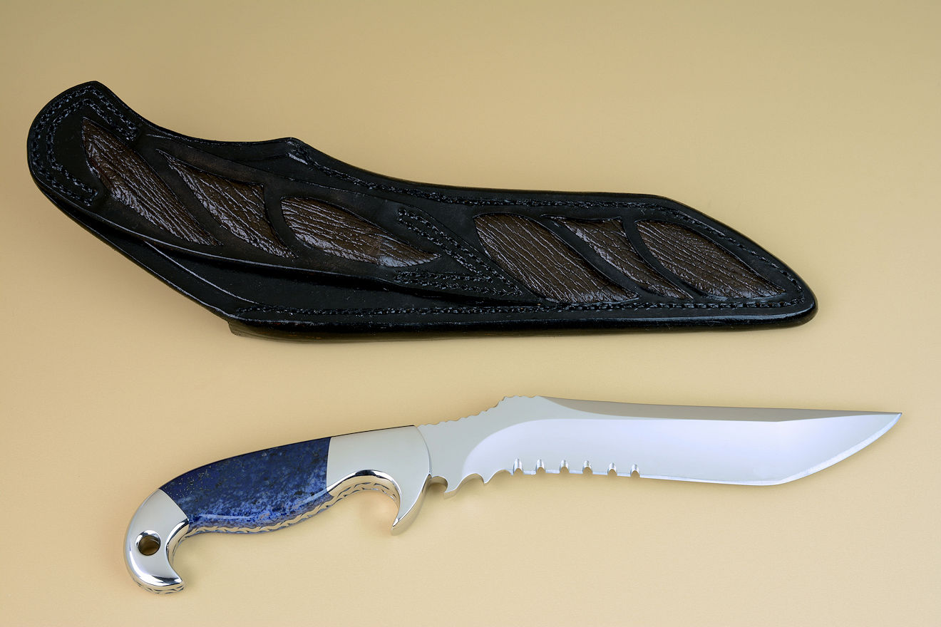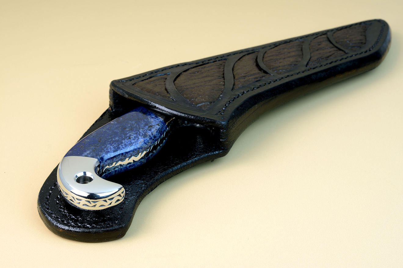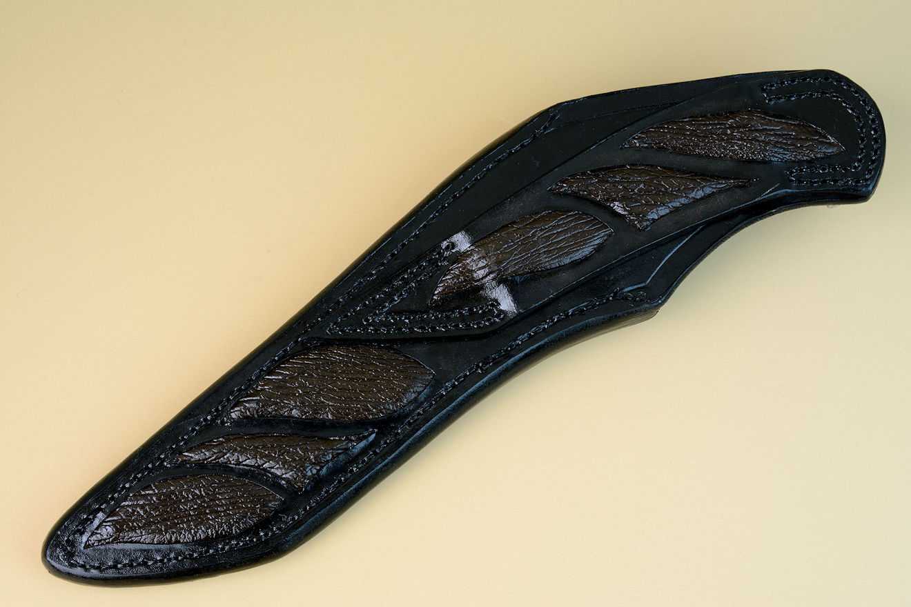 Sheath: Hand-carved leather shoulder inlaid