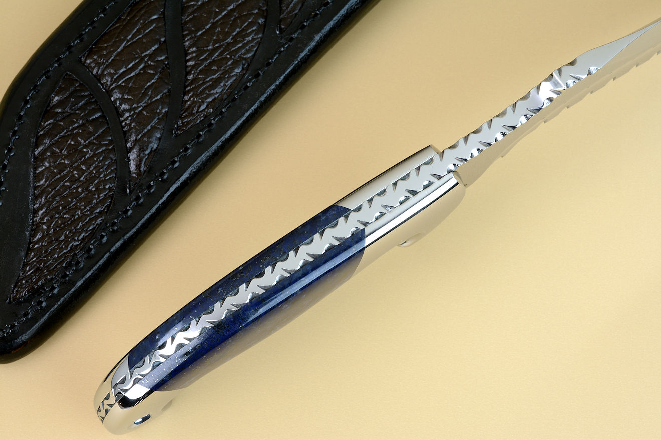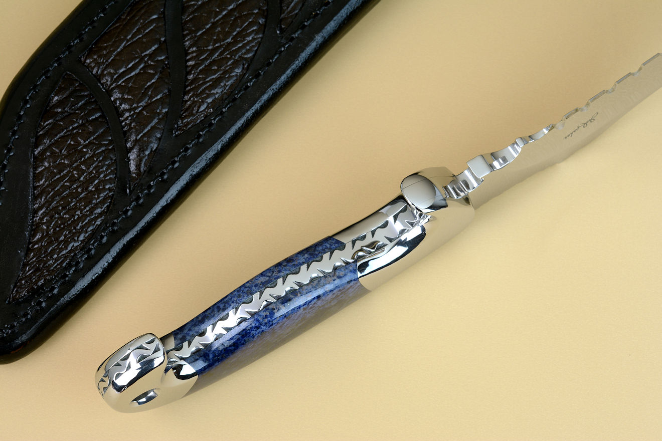 scales to the tang, a seamless fit. Dumortierite is an aluminum boro-silicate mineral with a high hardness (7 on the Mohs scale) and