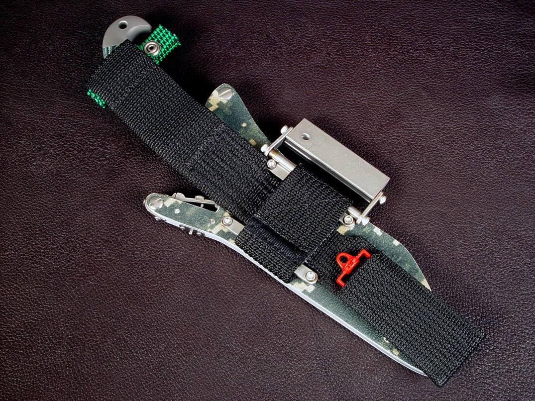 - Sheath: Locking, Woodland Digital Camouflage Pattern Kydex, Aluminum, Stainless Steel, Polypropylene and Nylon belt loop