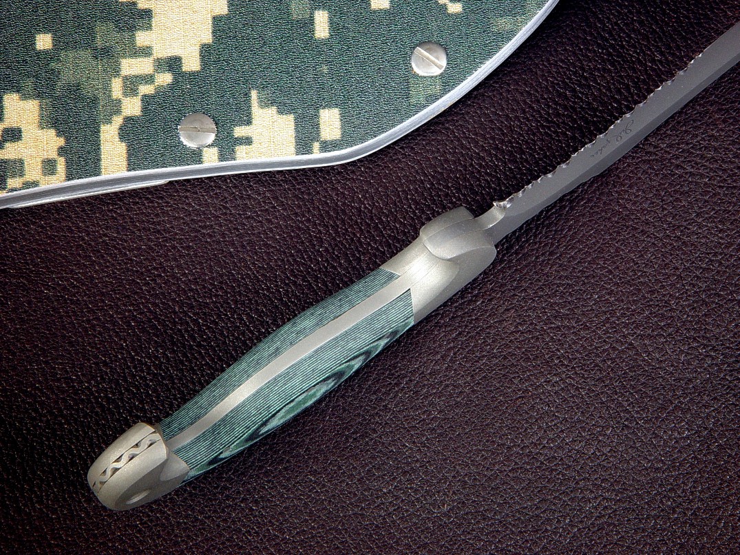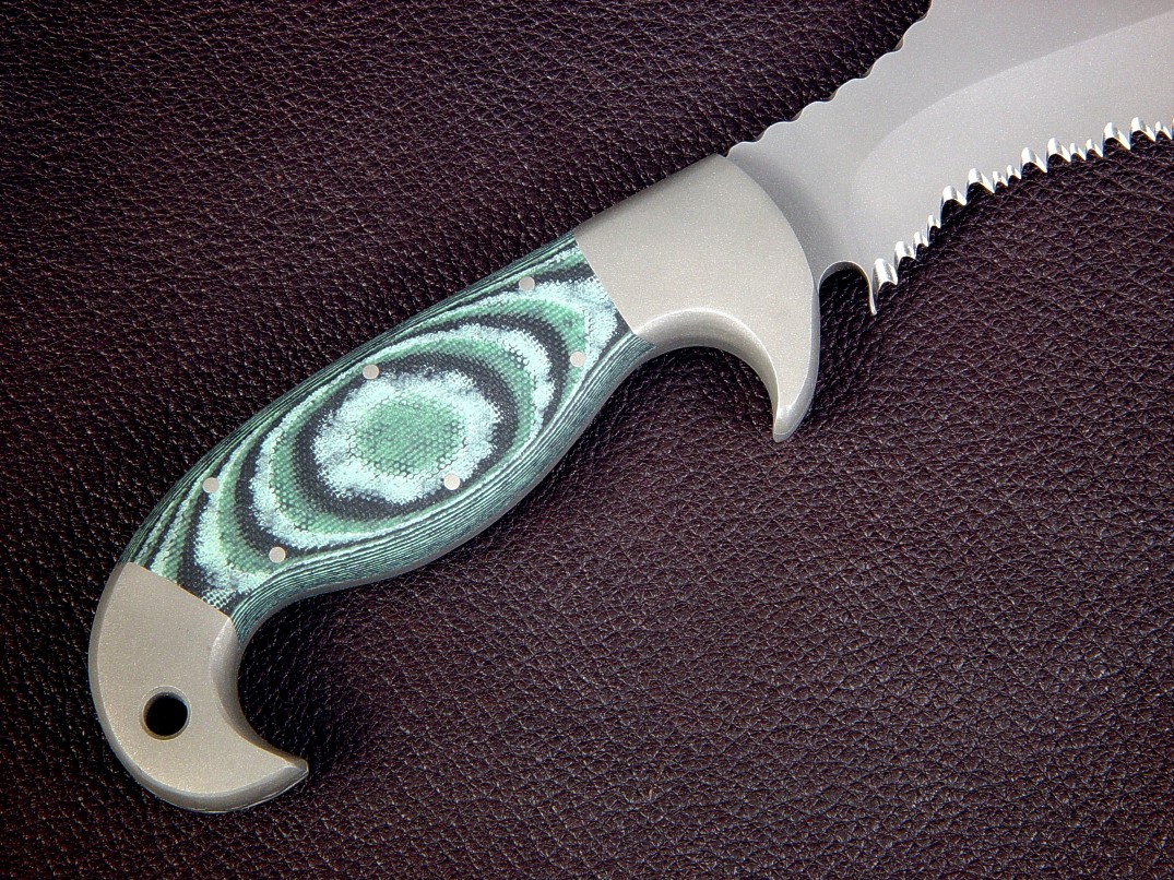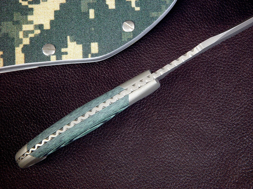 - Handle: Green, Black, Pistachio G10 Fiberglass/Epoxy Laminate Composite