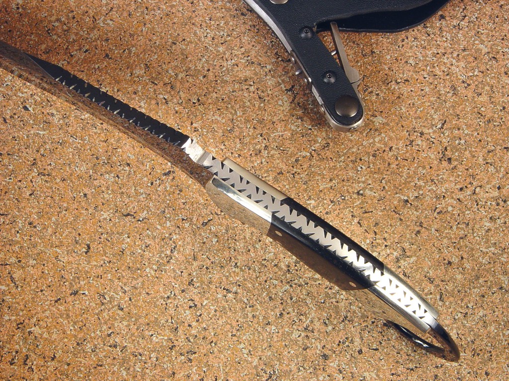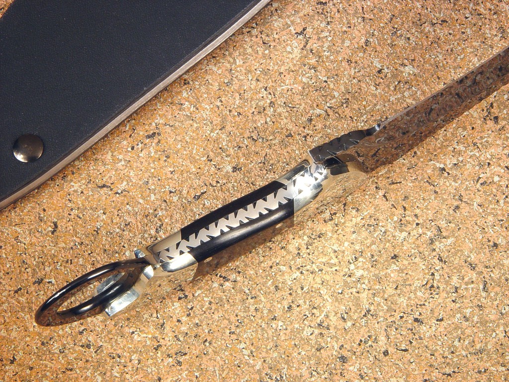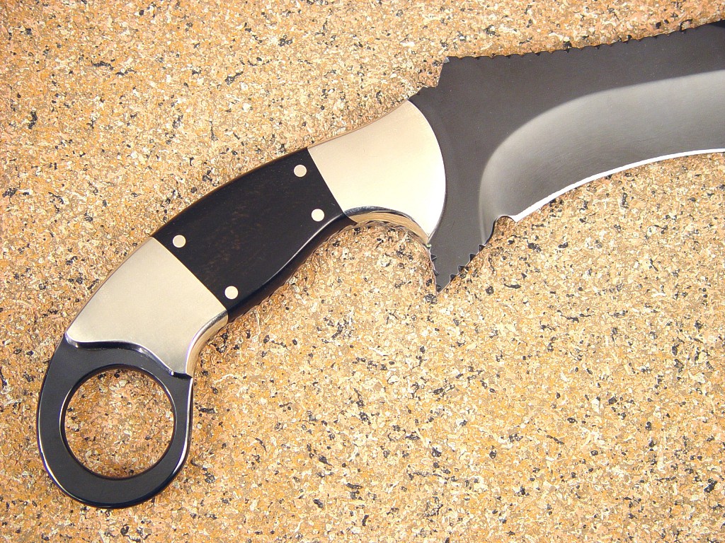 support, and the long recurve edge is razor keen. The blade has a mirror polish,