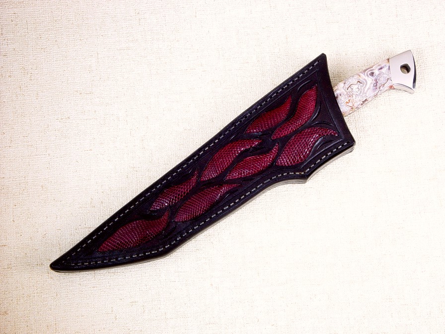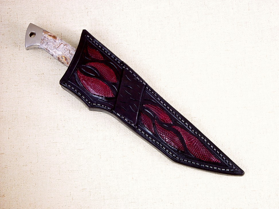 Sheath: Ringmark Lizard Inlaid in Hand-Tooled 9-10 oz. Leather Shoulder