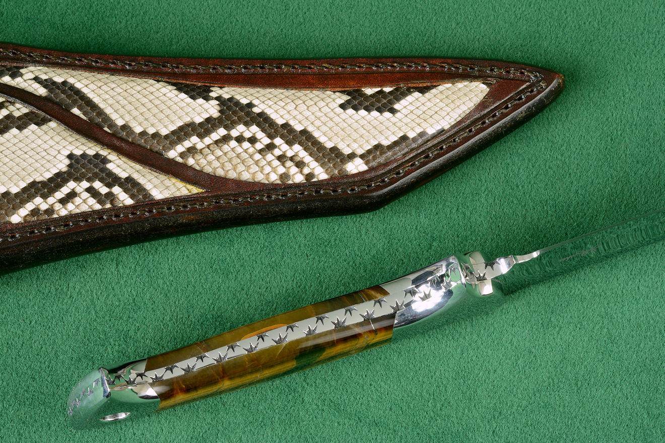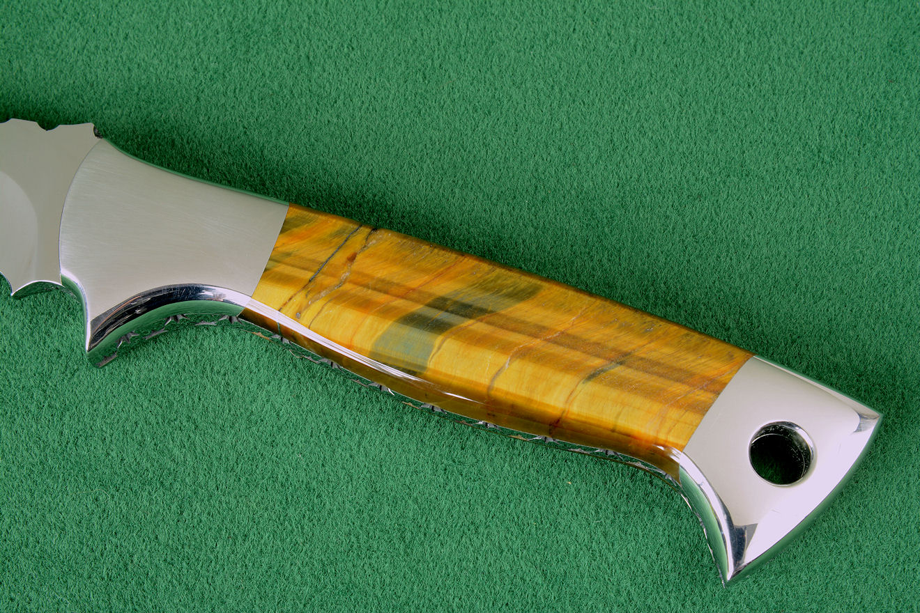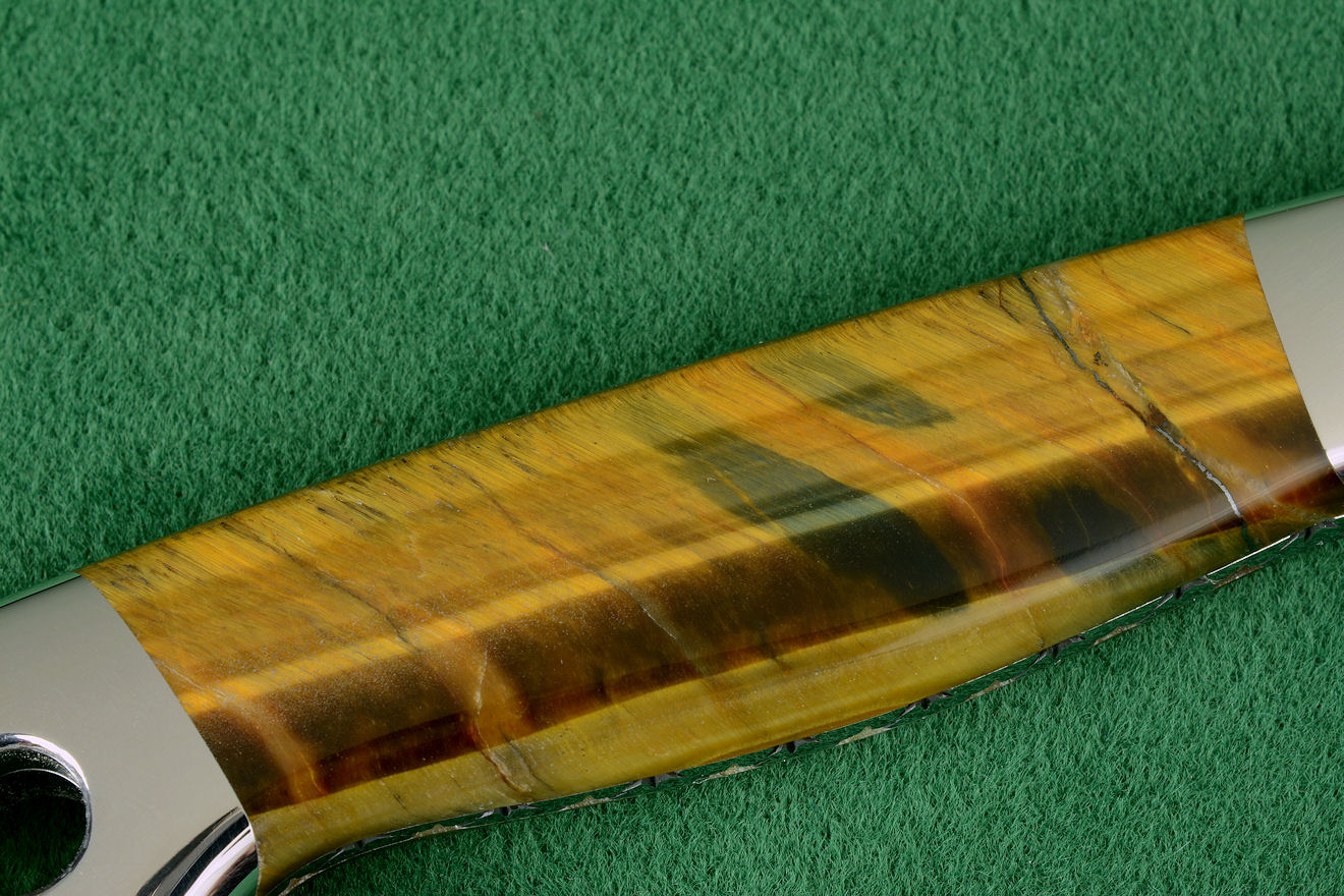 when needed. The knife is handled with Tiger Eye Quartz gemstone, a