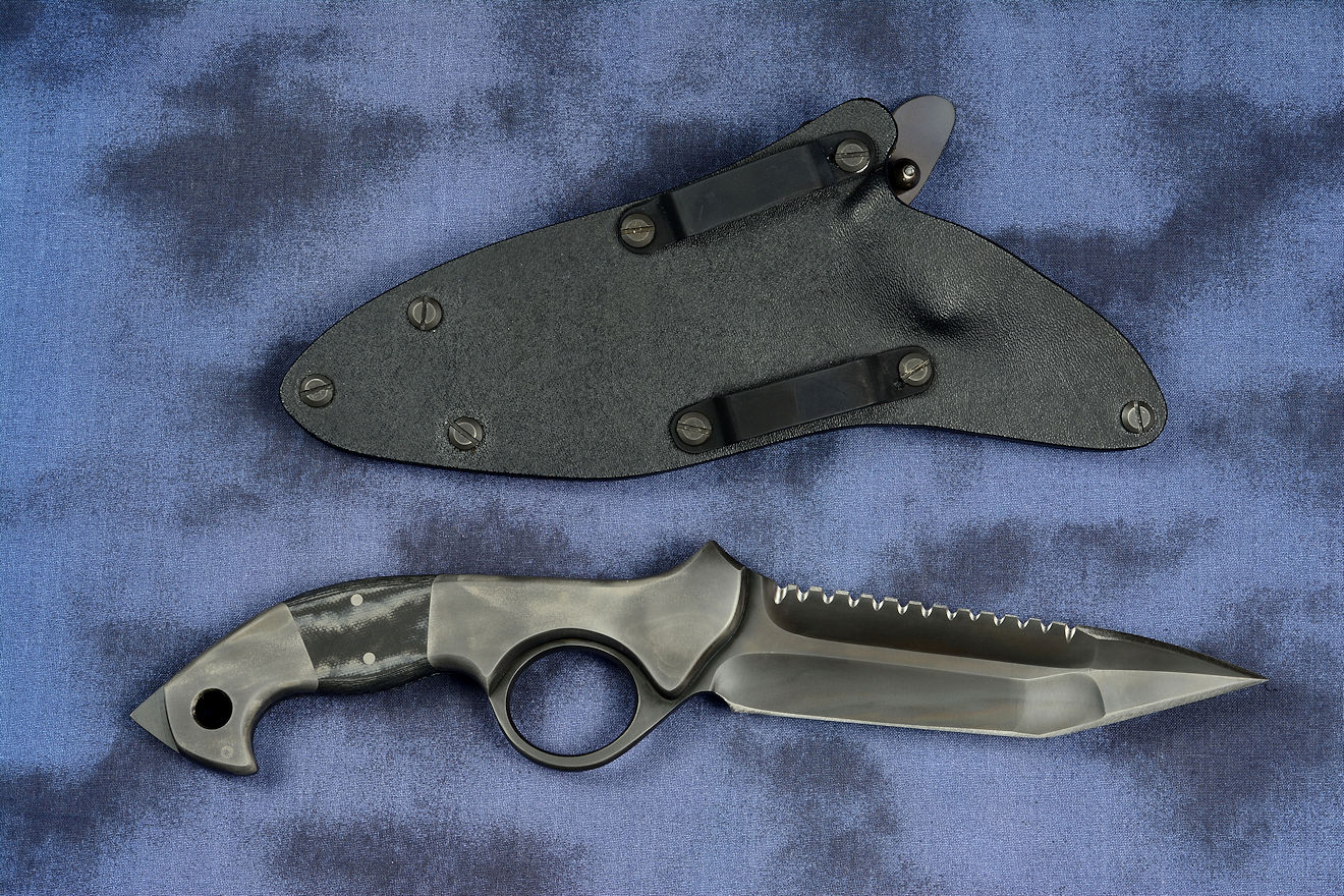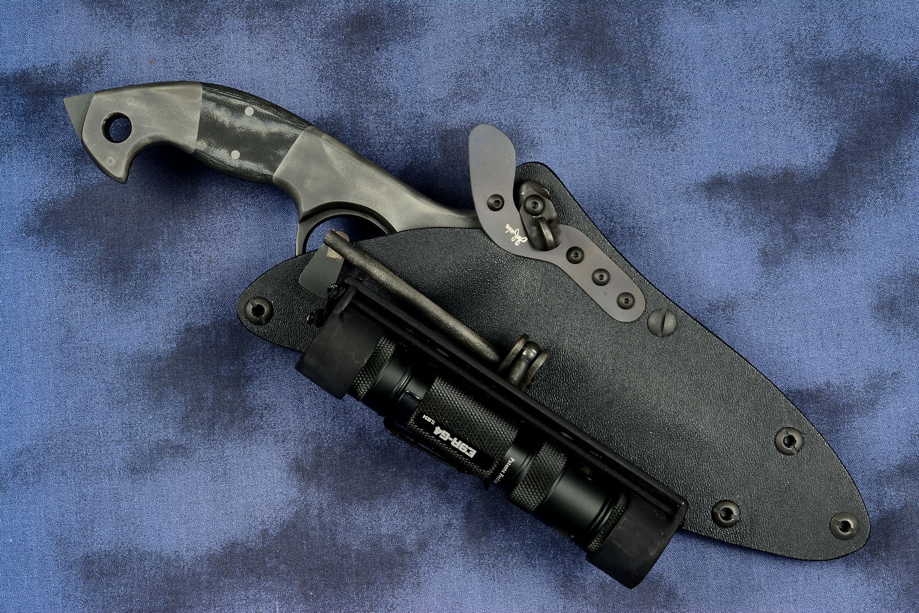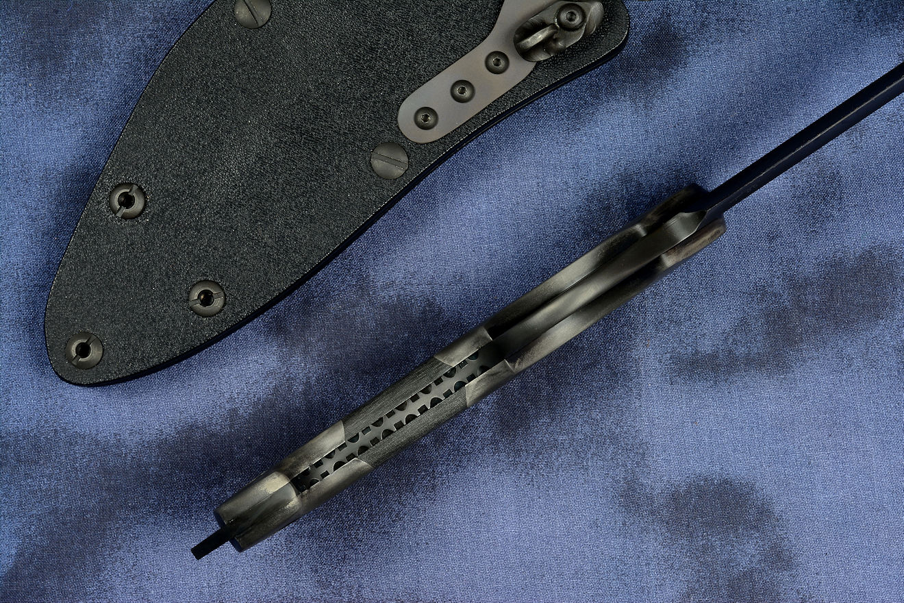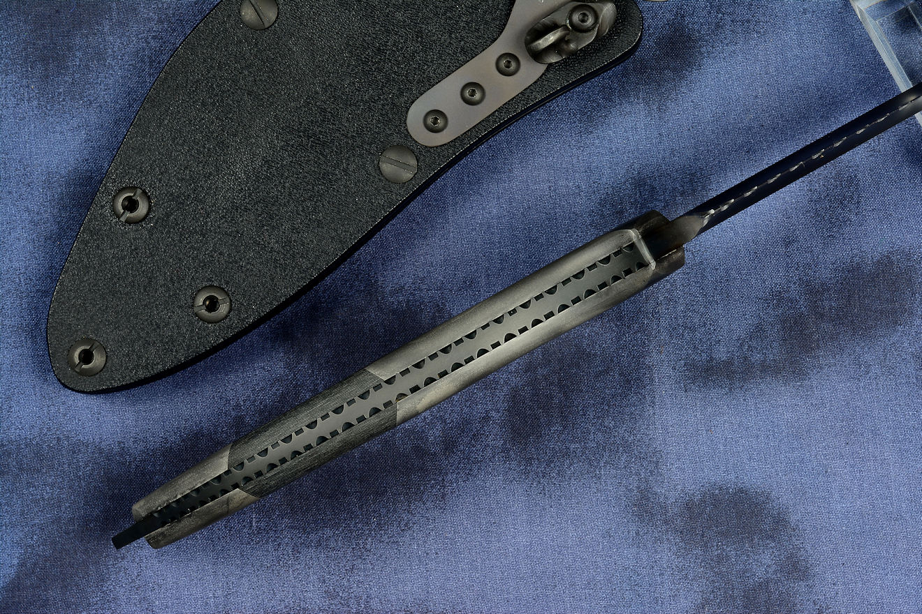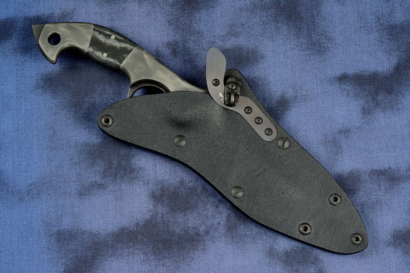 - Materials: Hybrid Tension Tab-Locking in Black Kydex, Black Anodized Aluminum Alloy, Blackened Stainless Steel, anodized 6AL4V Titanium.