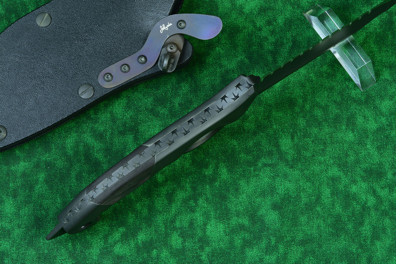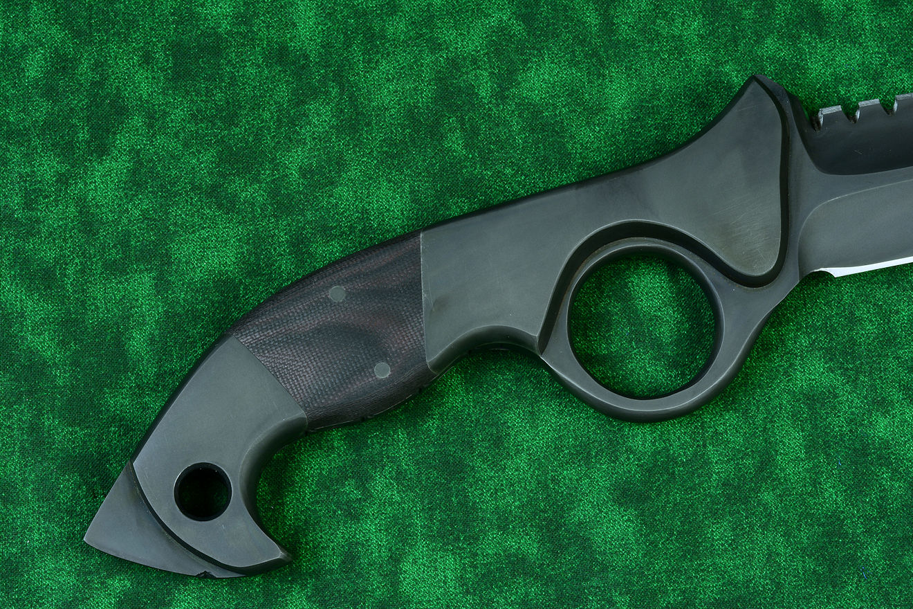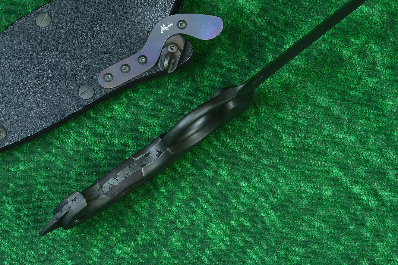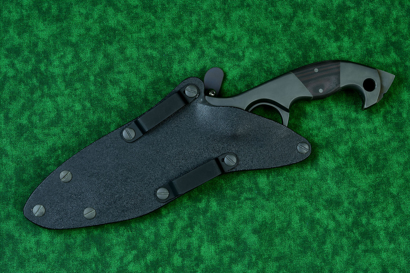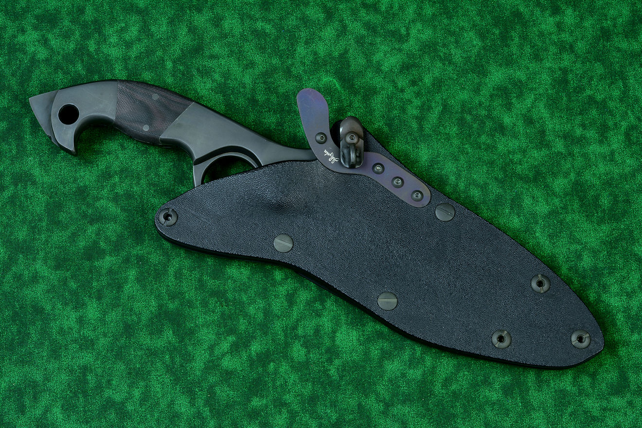 - Materials: Hybrid Tension Tab-Locking in Black Kydex, Black Anodized Aluminum Alloy, Blackened Stainless Steel, anodized 6AL4V Titanium.