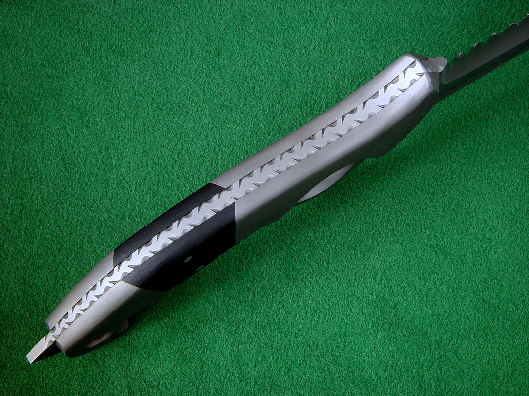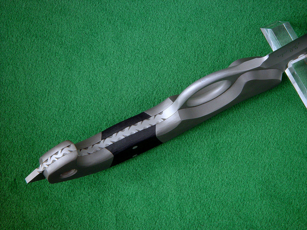 through-tang lanyard hole in the titanium for super security when elevated or in