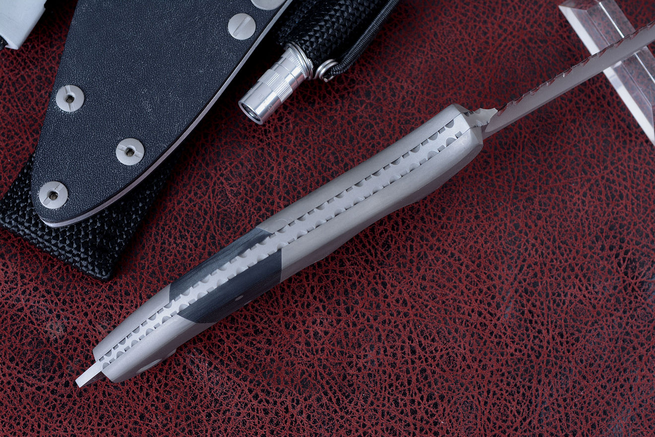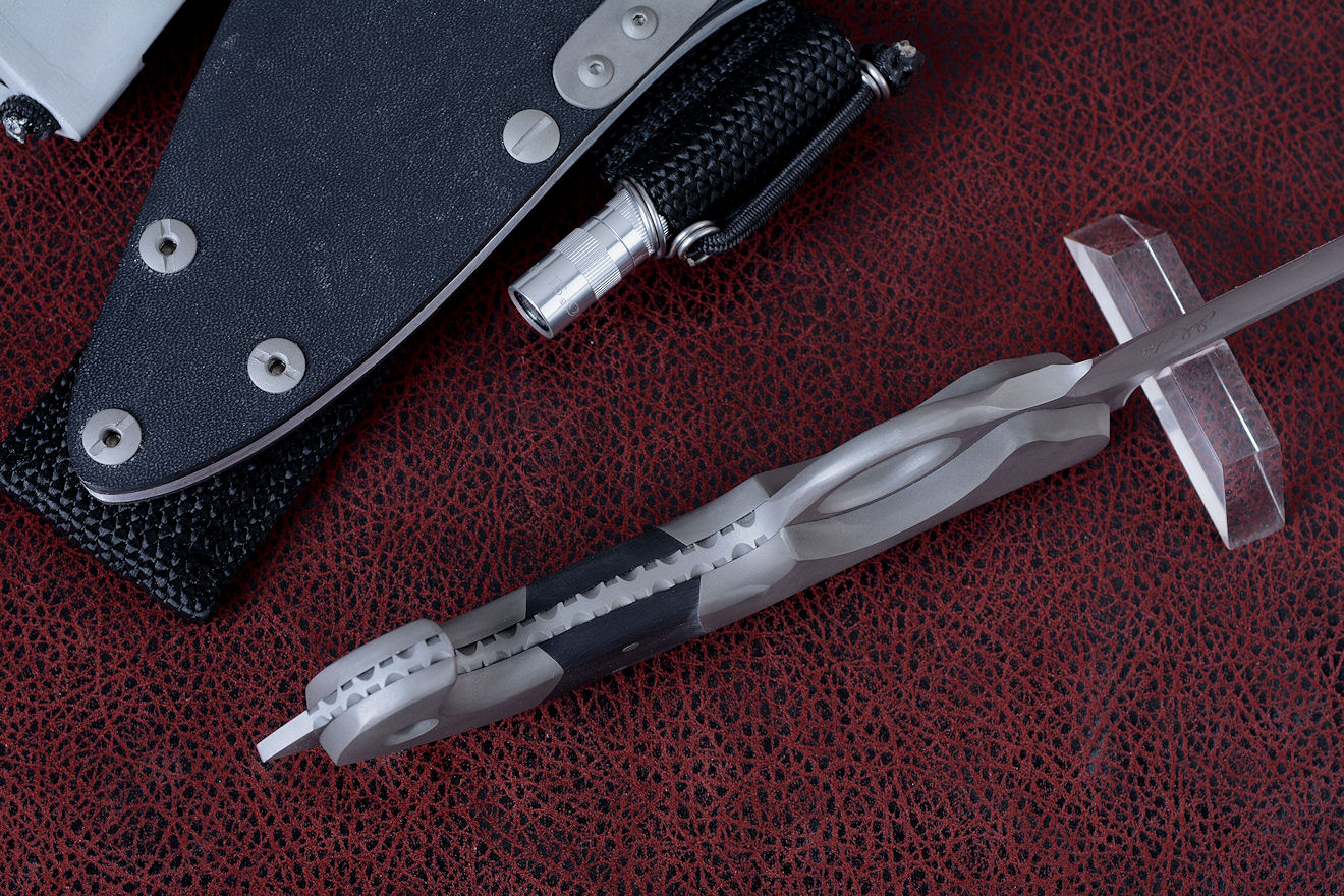 through-tang lanyard hole in the titanium for super security when elevated or in