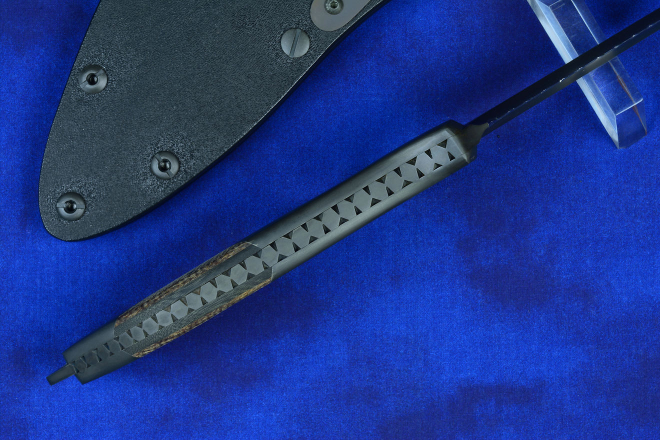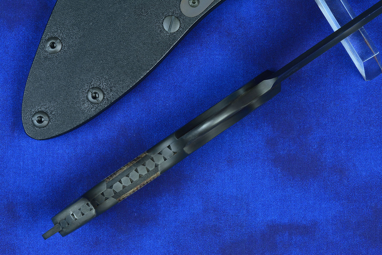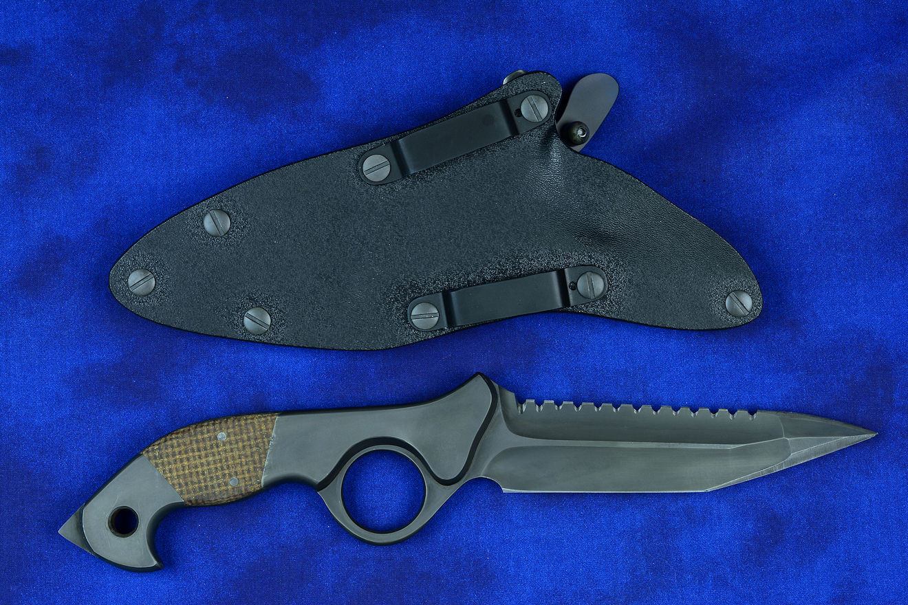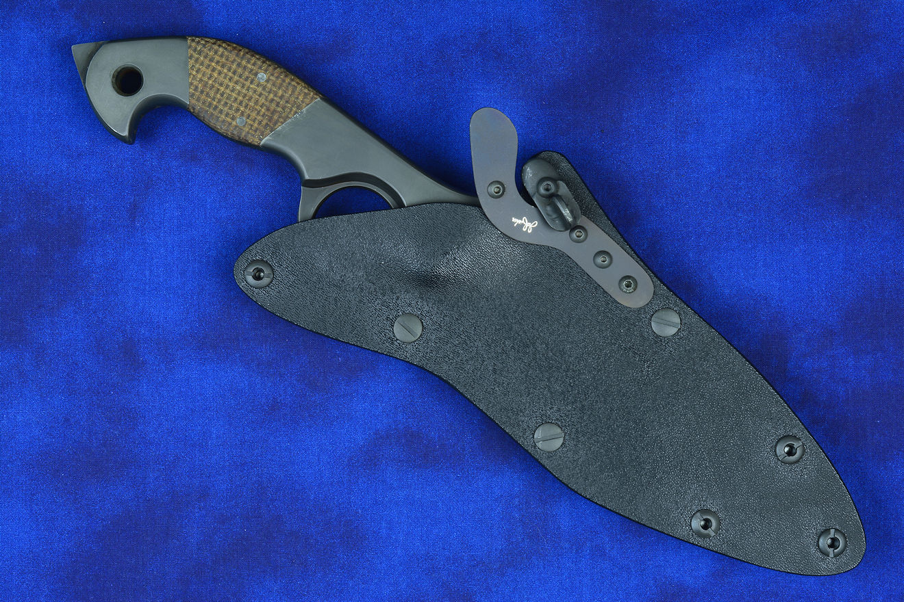- Materials: Hybrid Tension Tab-Locking in Black Kydex, Black Anodized Aluminum Alloy, Blackened Stainless Steel, anodized 6AL4V Titanium.