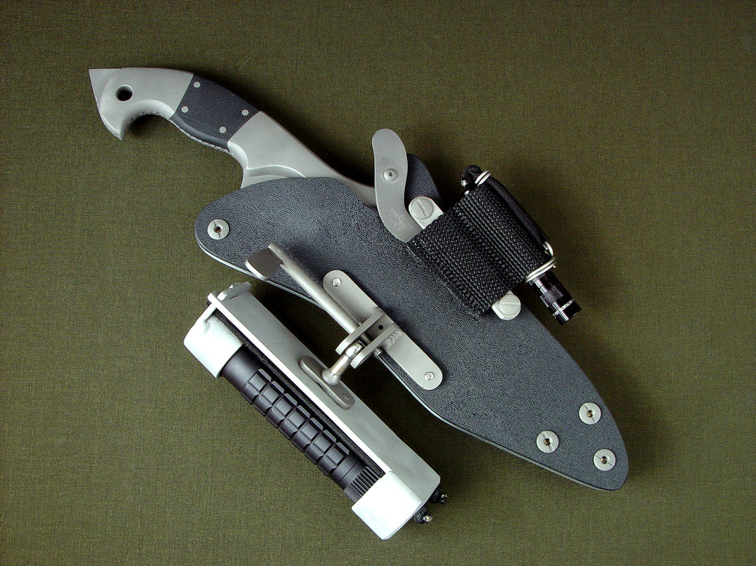 Sheath: Hybrid Tension-Locking in Black Kydex, Aluminum, Stainless Steel, Titanium