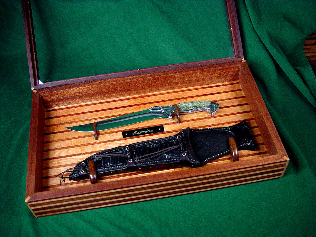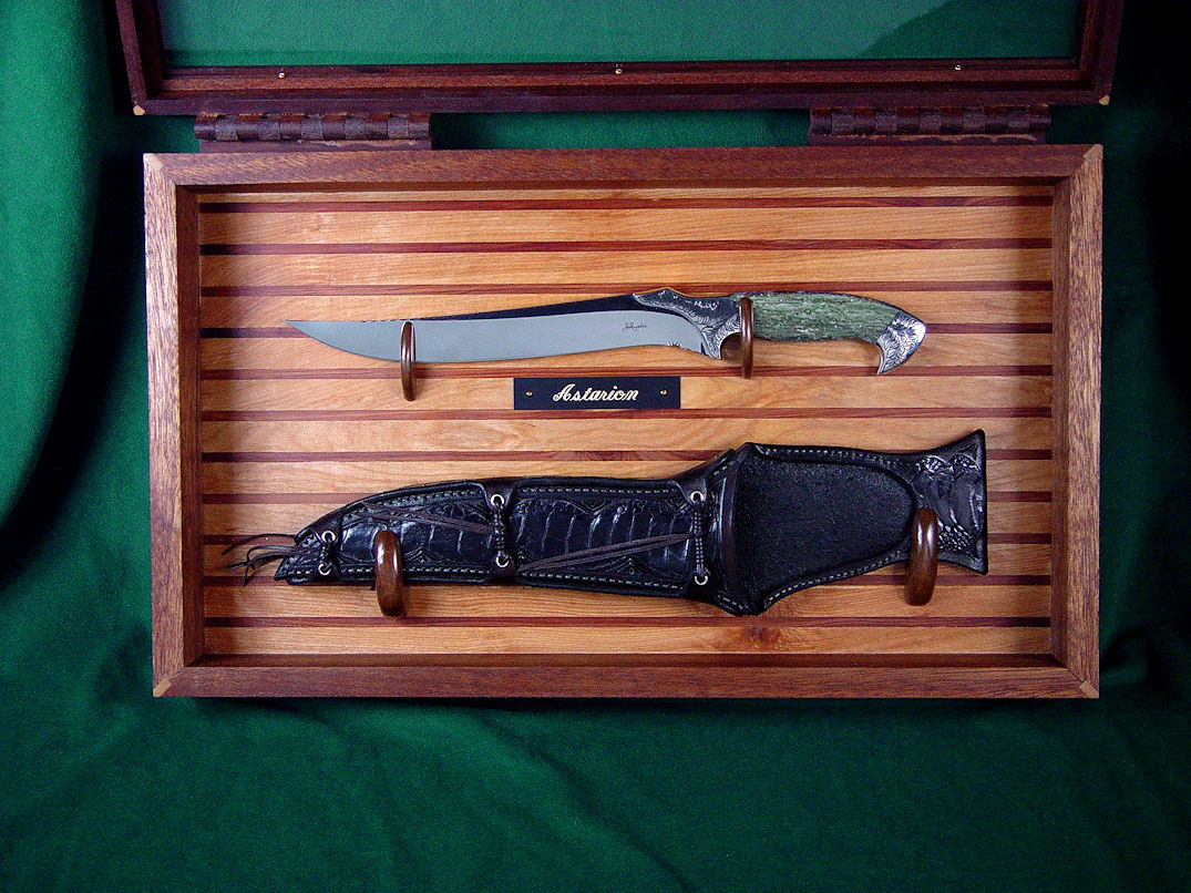 case displays the knife and sheath with class.