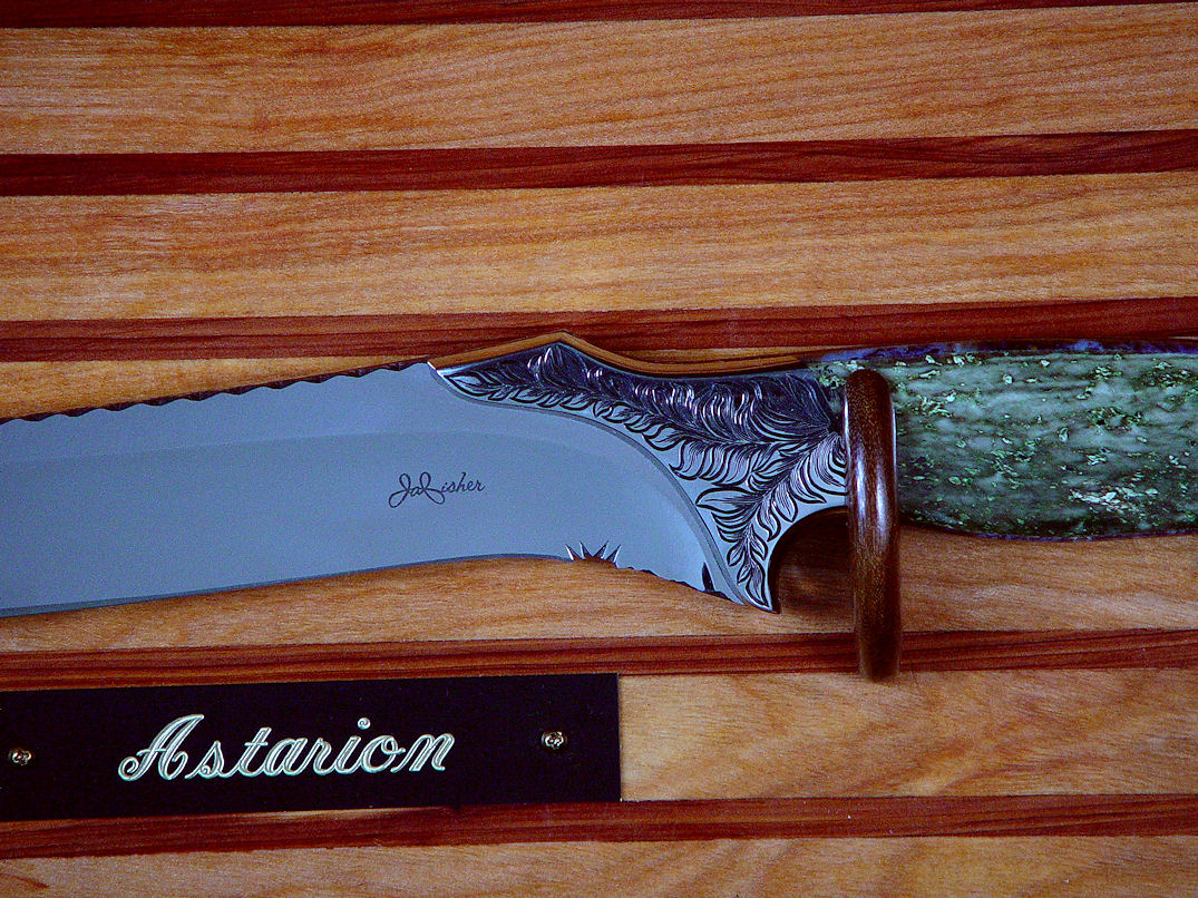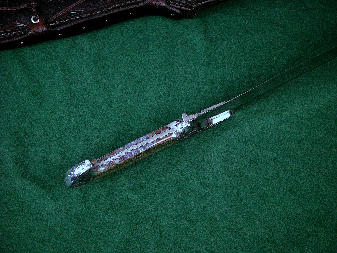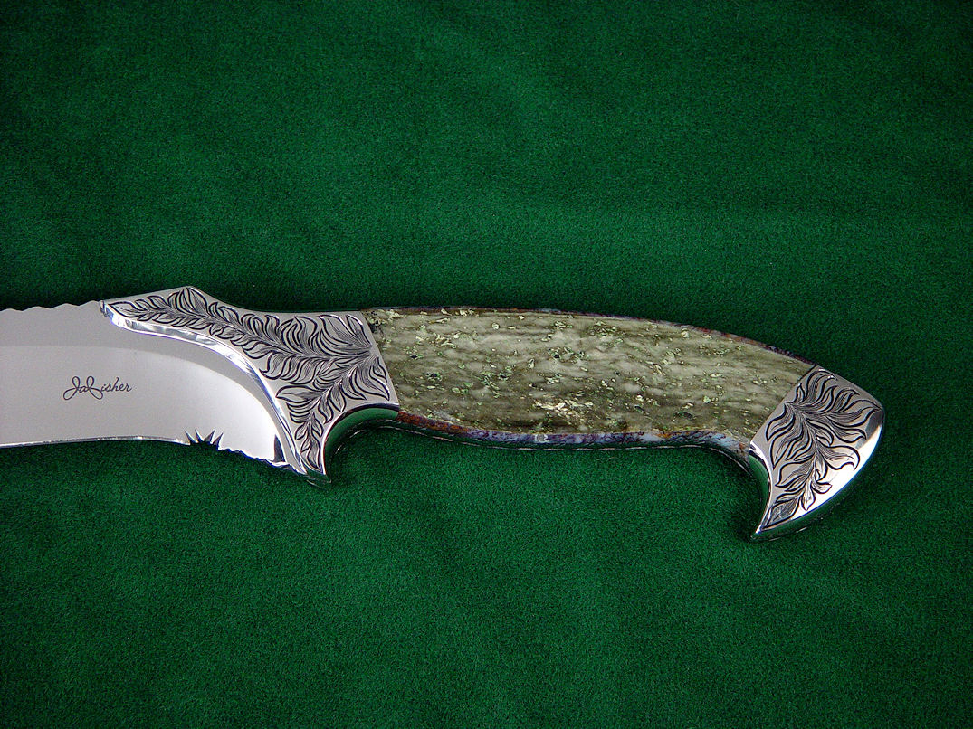 Fittings/Bolsters: 304 Stainless Steel, mirror polished, hand-engraved by Jay