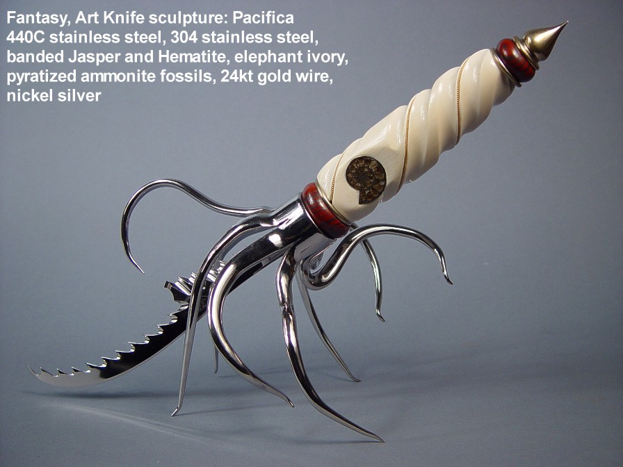 There is no miracle about making knives. Making knives is the oldest profession around. Yes, before even that one. Men have made knives for literally millions of years, for without a blade, early man would have starved. It is an honorable profession, if presented honorably. There is no great mystery, just practiced skill and determination. There are no magic secrets to steel ingredients, to heat treating, to knife or blade shape, geometry, or materials. There is no enigma in the blade, no mystical materials; we don't quench in the blood of our enemies. There is no romance to the cutting edge, only artistic interpretation. No sword or crystal has magical powers, steel can't cleave stone, and a suitable dagger will not allow you to fly. Fine knives come from trained and practiced hands, not from a hidden tomb in a mountain. They are tools and sometimes works of art made by people like me who love to make them.