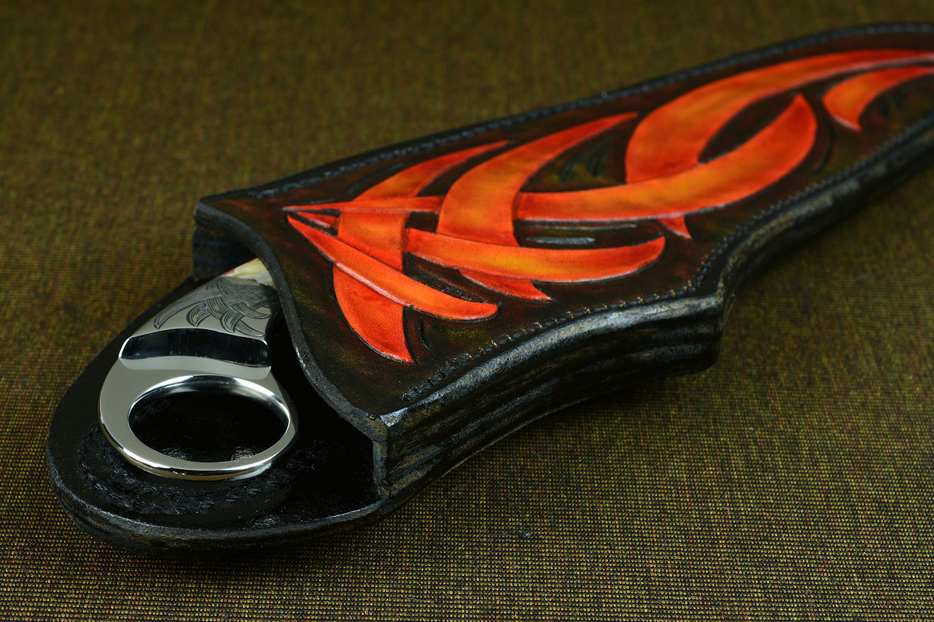 bolster engraving and hand-carved the design in the thick 9-10 oz.
