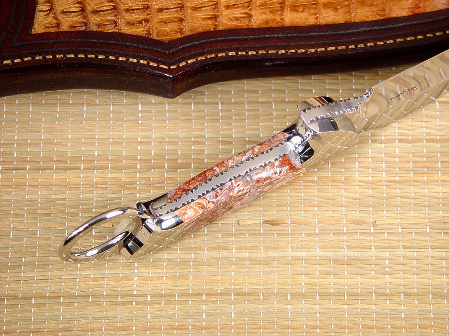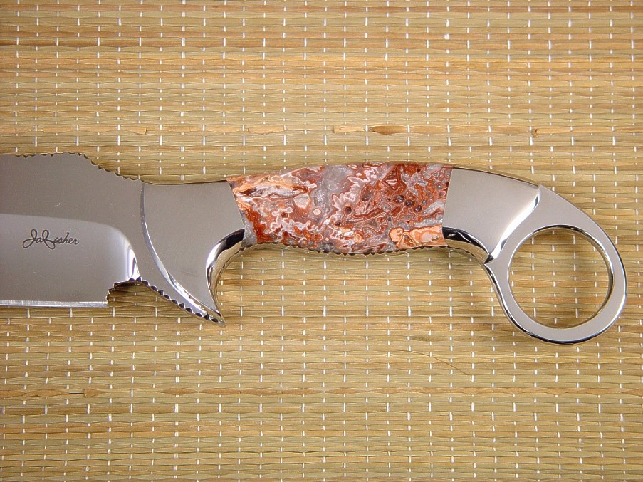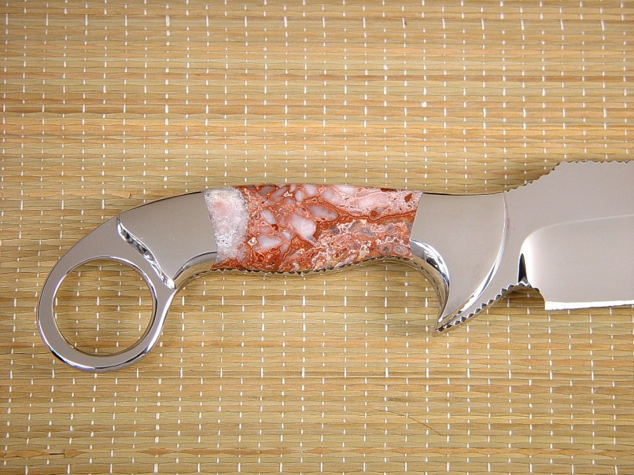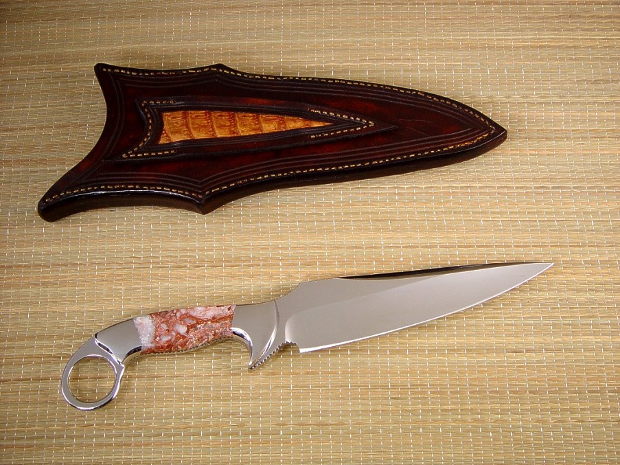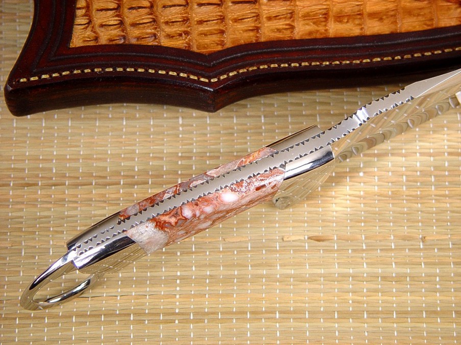 well with the intricate Crazy Lace Agate. The sheath is deep and