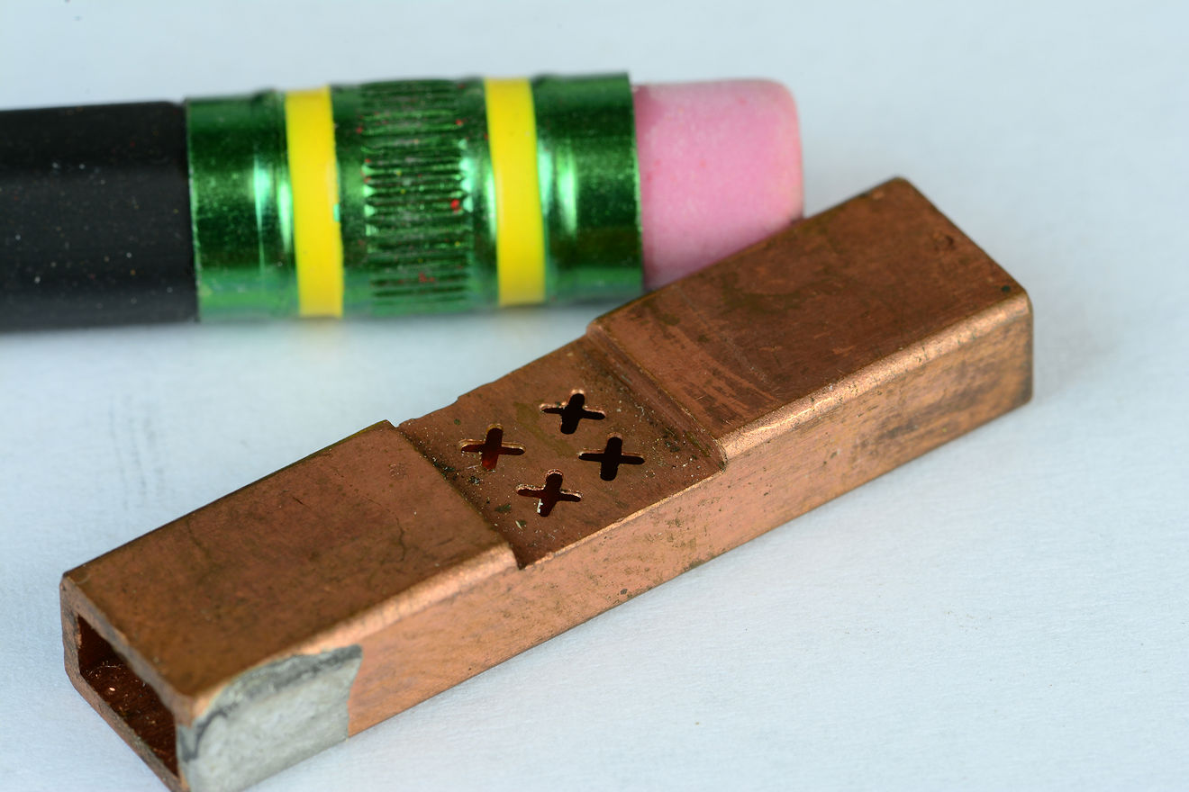 In the early 1990s, I was still into chemical photography in my studio in Magdalena, New Mexico. I was having a discussion with a machine shop supervisor at the VLA, the Very Large Array Radio Telescope, run by the NRAO (National Radio Astronomy Observatory), under the National Science Foundation. The facility is an impressive site; at the time there were 27 dishes, 85 feet in diameter, spread out in a big "Y" on the San Augustine plains 30 miles west of our little village. The machinist was trying to cut two tiny "X's" in a piece of high purity copper micro-waveguide filter. This waveguide is cryogenically chilled in operation, to reduce spurious signals. This is a microscopic affair, and the size of the little x determines the wavelength that will be transmitted back to the processing center for analysis and creation of the images. The copper was only a few mils (thousandths of an inch) thick, and a high precision micro-mill was not capable of cutting the crosses in the tube with accuracy.