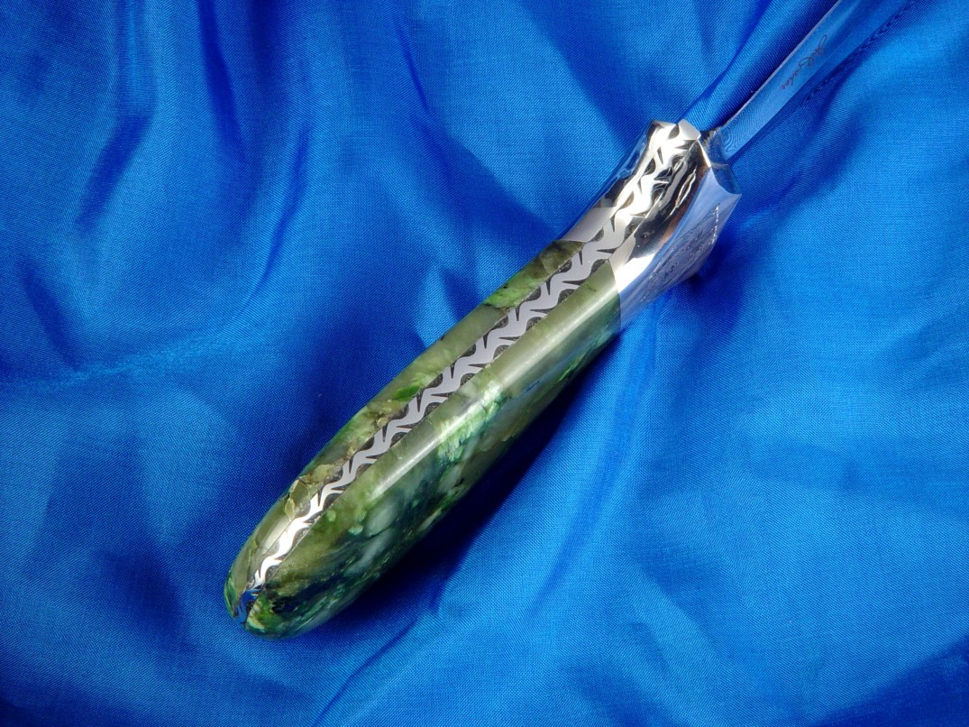 - Handle: Polished British Colombian Nephrite Jade Gemstone