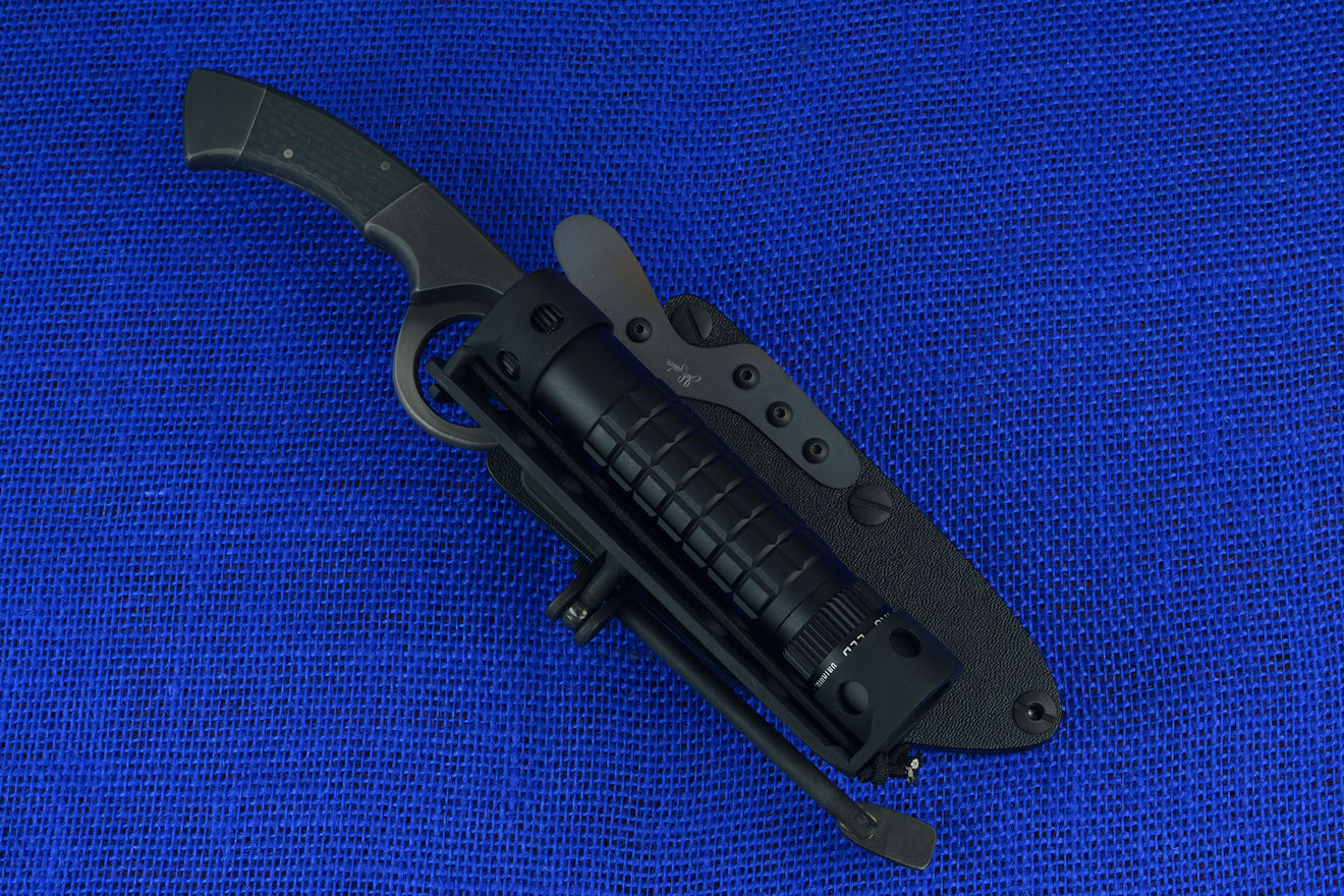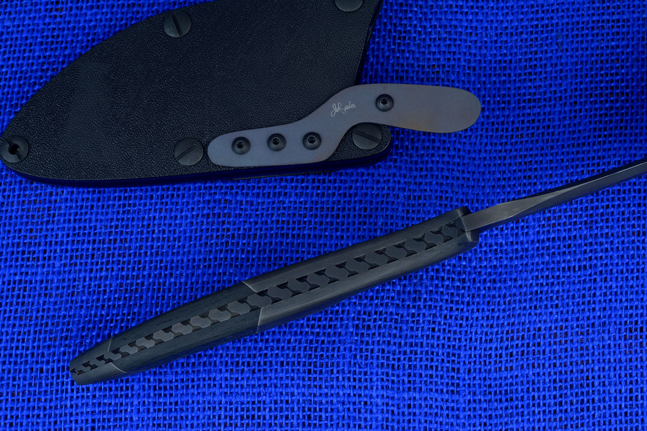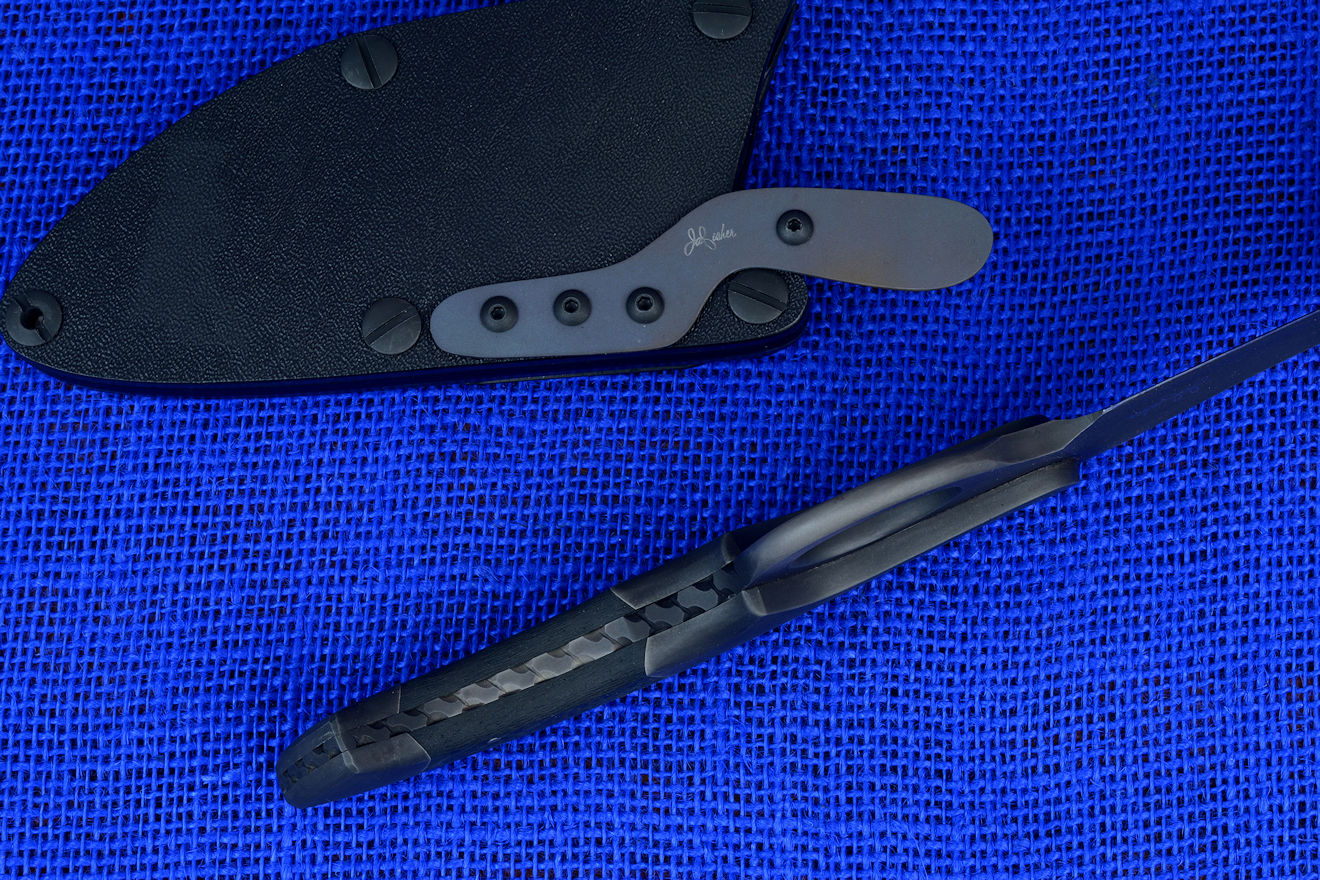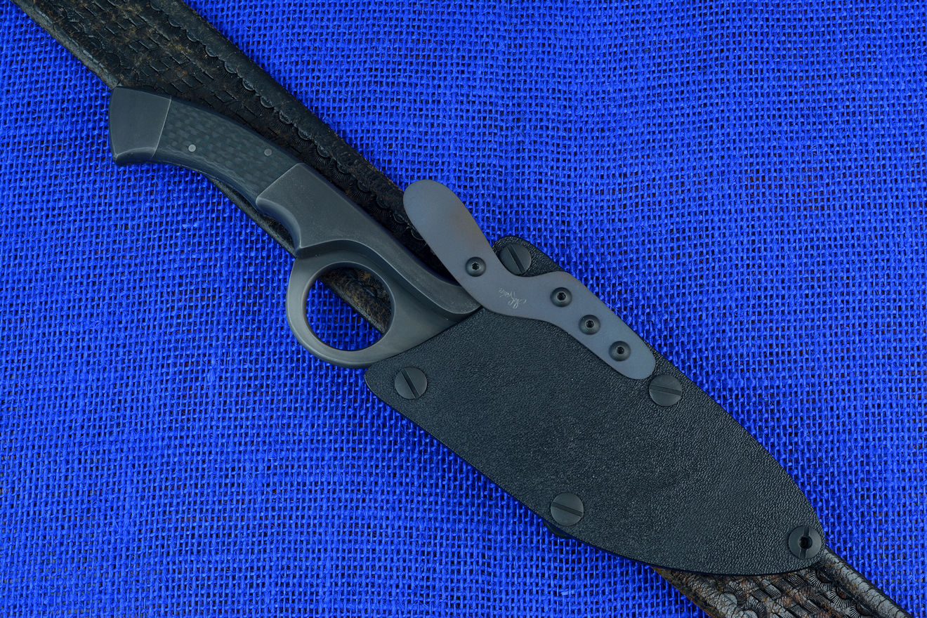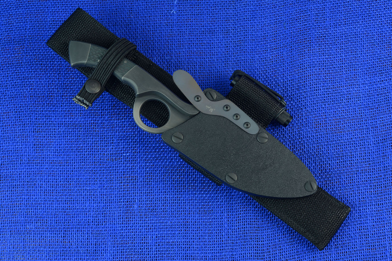 - Sheath: Hybrid Tension-Locking in Black Kydex, Black Anodized Aluminum Alloy, Black Oxide Stainless Steel, Gray-blue Oxide Titanium