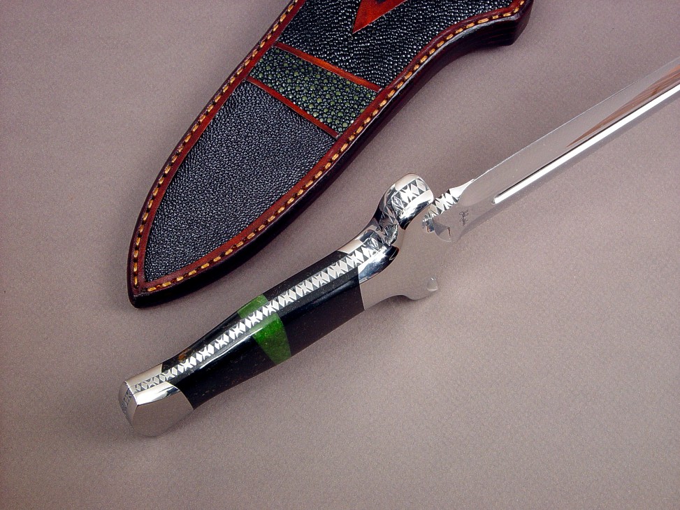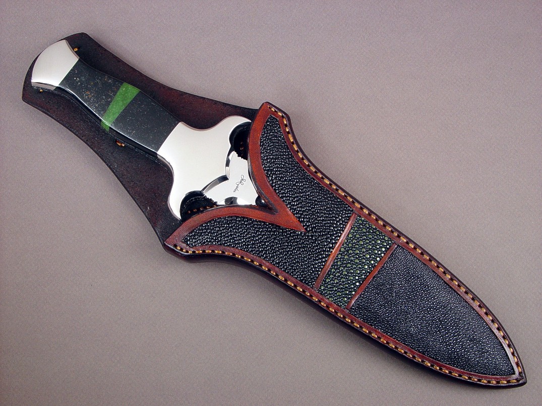 constructed a sheath (or scabbard) from 9-10 oz. leather shoulder,