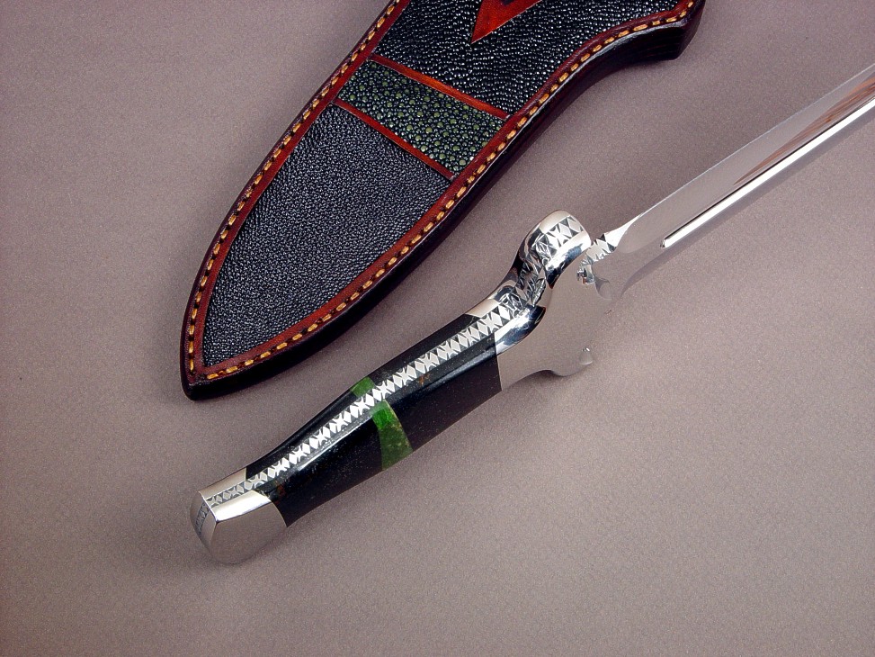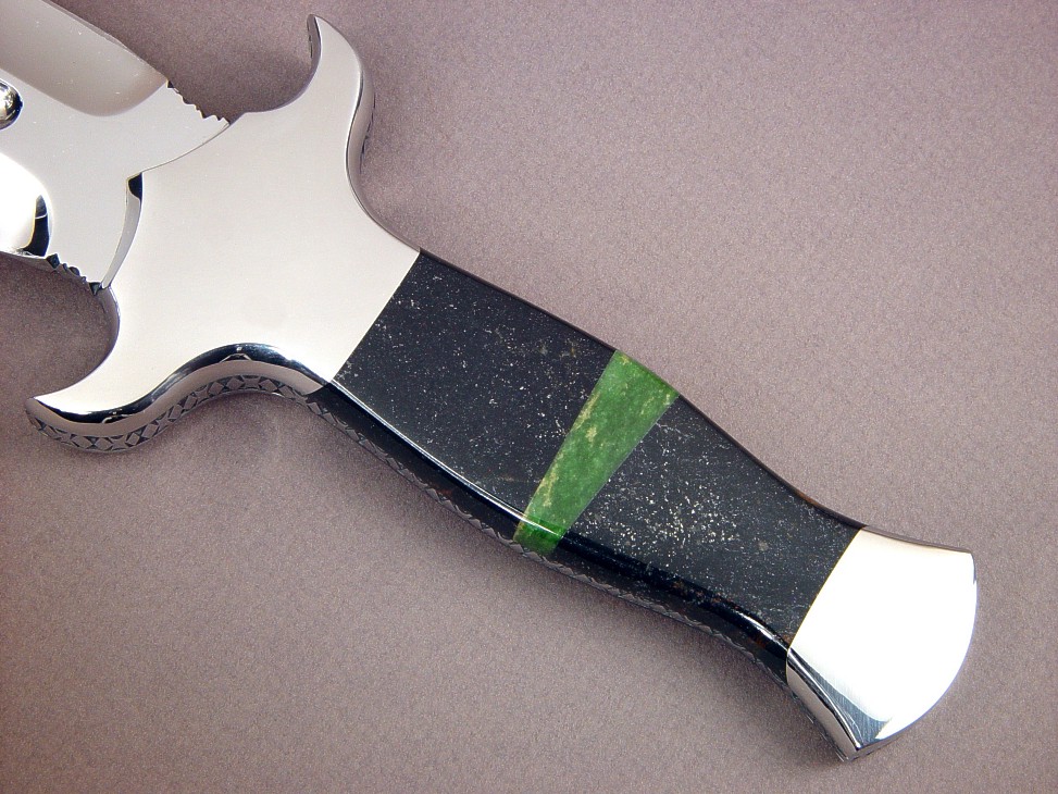 arrangement of the jade mosaic in the handle. The blade is snug in