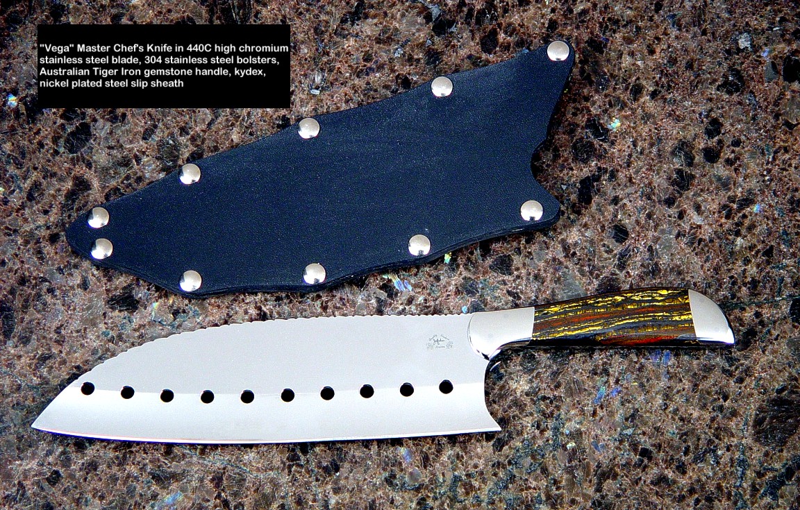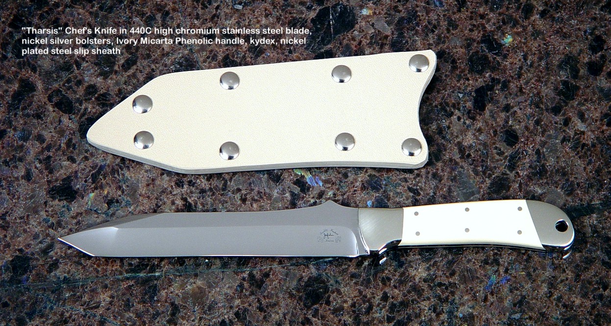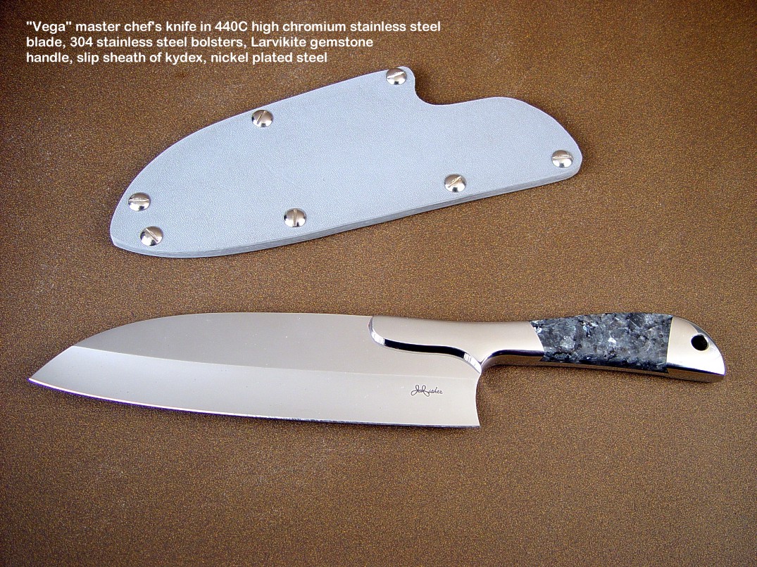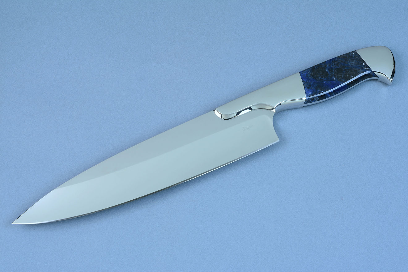 I consider it my duty as a maker of extremely fine chef's knives to help the chef out, but I can not help him if he has a low grade, inferior, and weak knife blade. The reason for every knife is the blade, and the blade is made of fine, modern tool steel (or should be). The fine knife blade should not be a low alloy, old-world style carbon steel, but the finest engineered, most modern, highest quality, refined, clean, and scientifically made and treated, machined, ground, and finished stainless tool steel we have available. In addition, the knife should always be made entirely of Food Contact Safe materials and construction. A good piece of professional chef's cutlery starts with the foundation of an exceptional blade. This doesn't only mean an ornamental blade, although style, appearance, and artistic value can be well-applied here.