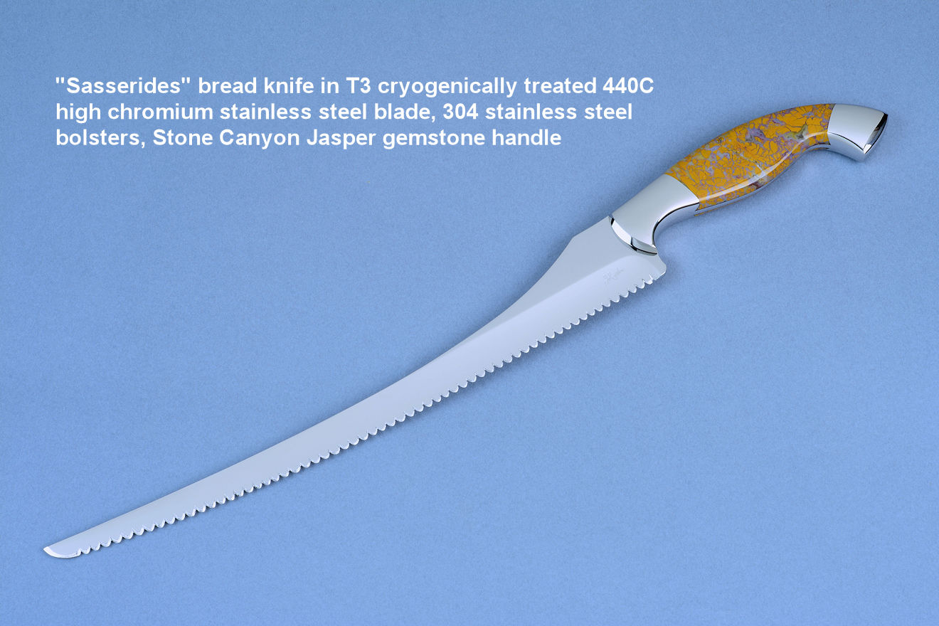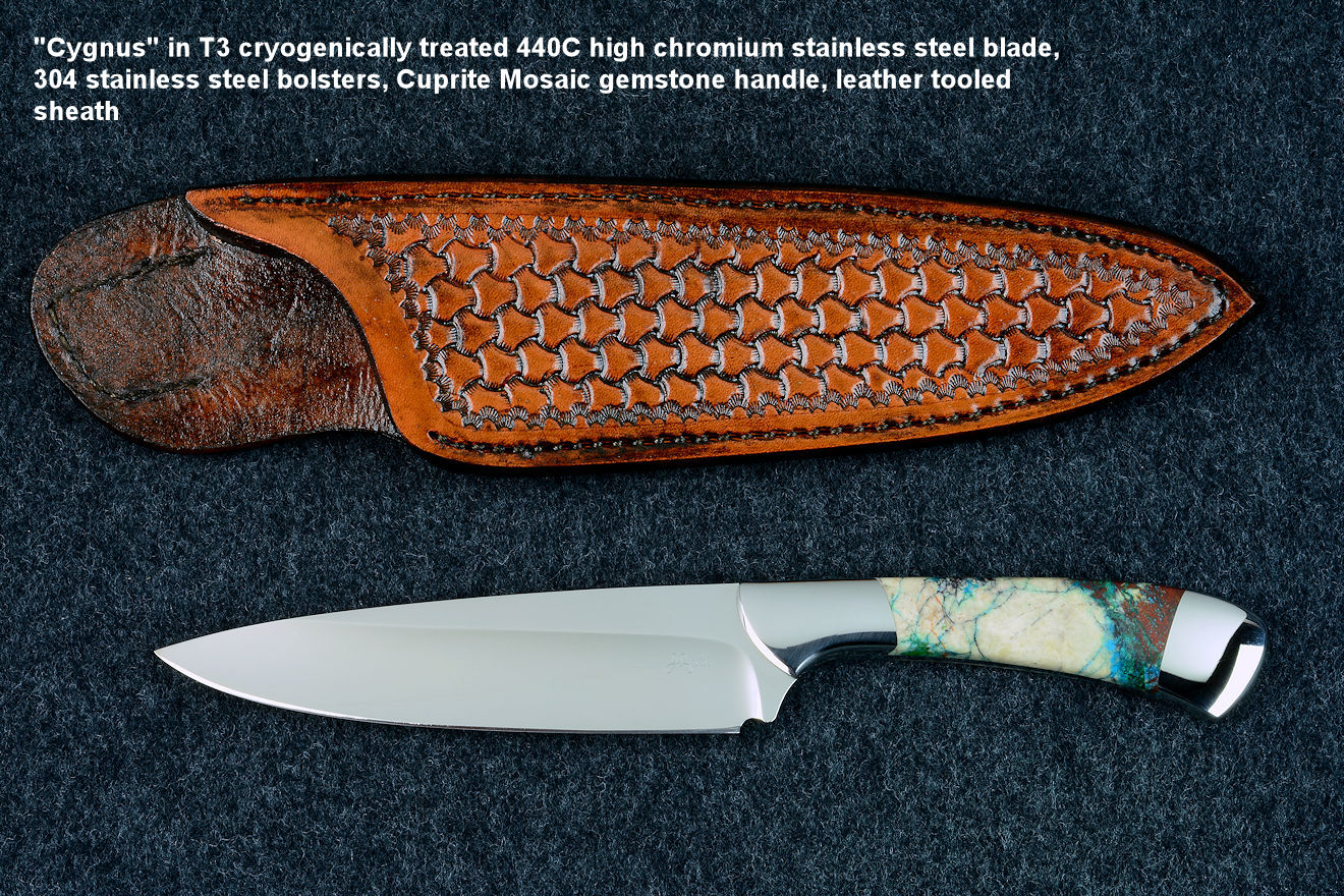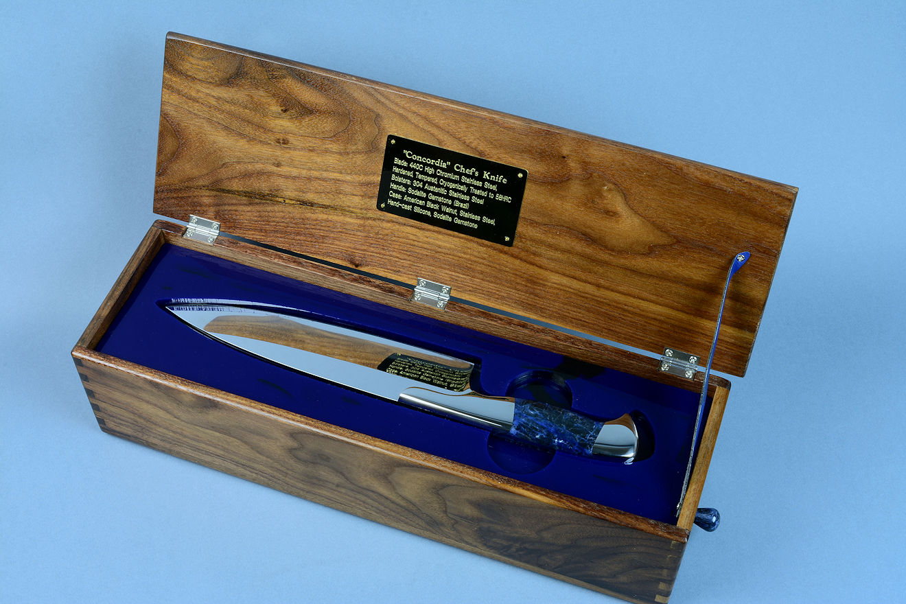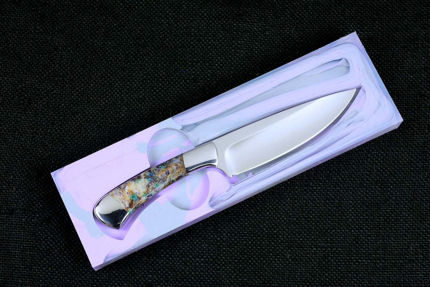 I consider it my duty as a maker of extremely fine chef's knives to help the chef out, but I can not help him if he has a low grade, inferior, and weak knife blade. The reason for every knife is the blade, and the blade is made of fine, modern tool steel (or should be). The fine knife blade should not be a low alloy, old-world style carbon steel, but the finest engineered, most modern, highest quality, refined, clean, and scientifically made and treated, machined, ground, and finished stainless tool steel we have available. In addition, the knife should always be made entirely of Food Contact Safe materials and construction. A good piece of professional chef's cutlery starts with the foundation of an exceptional blade. This doesn't only mean an ornamental blade, although style, appearance, and artistic value can be well-applied here.