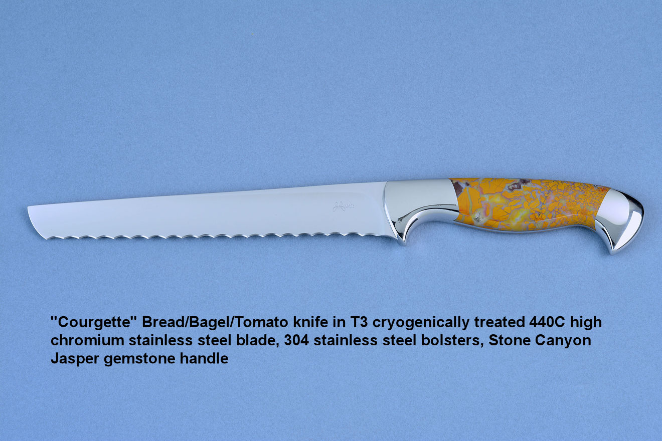 Logic: My professional logic is that I want to create and supply the finest knives available in our modern world, with modern materials and techniques, to some of the finest chefs and clients, whether they are cooking at home, as a profession, or are determined to become fine chefs. I strive to create designs that are logical, for uses in the real kitchen, with reasonable and dependable geometries, materials, finishes, and accessories.