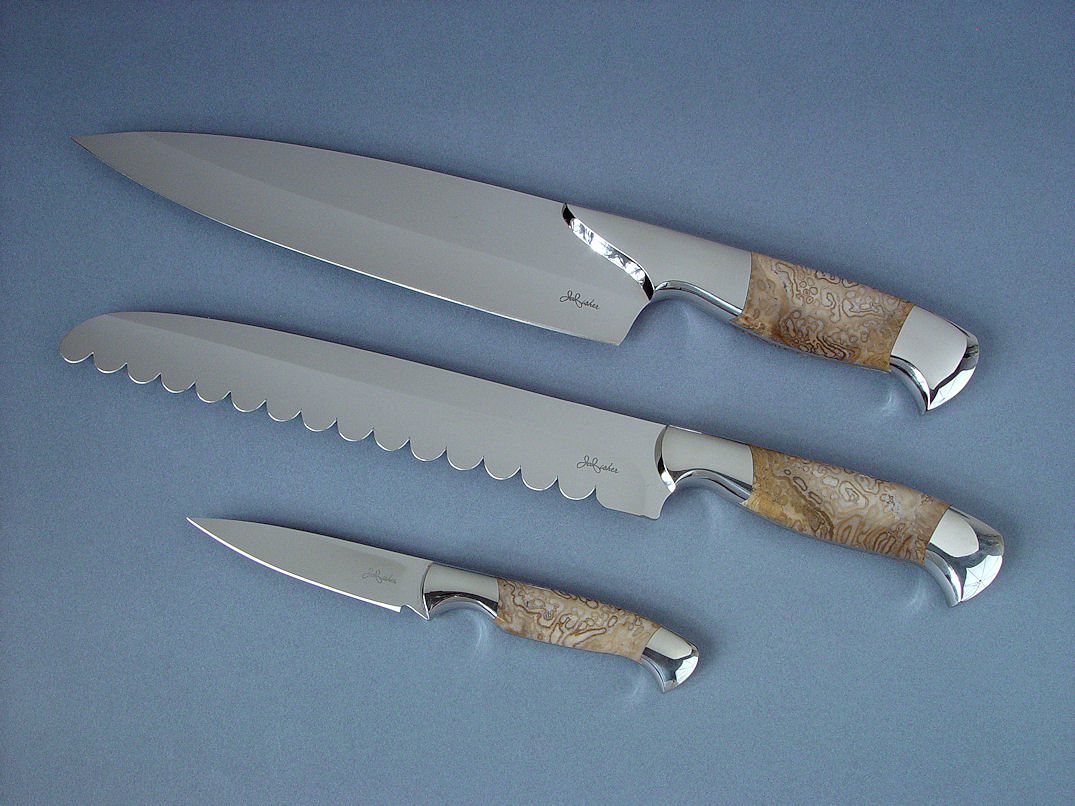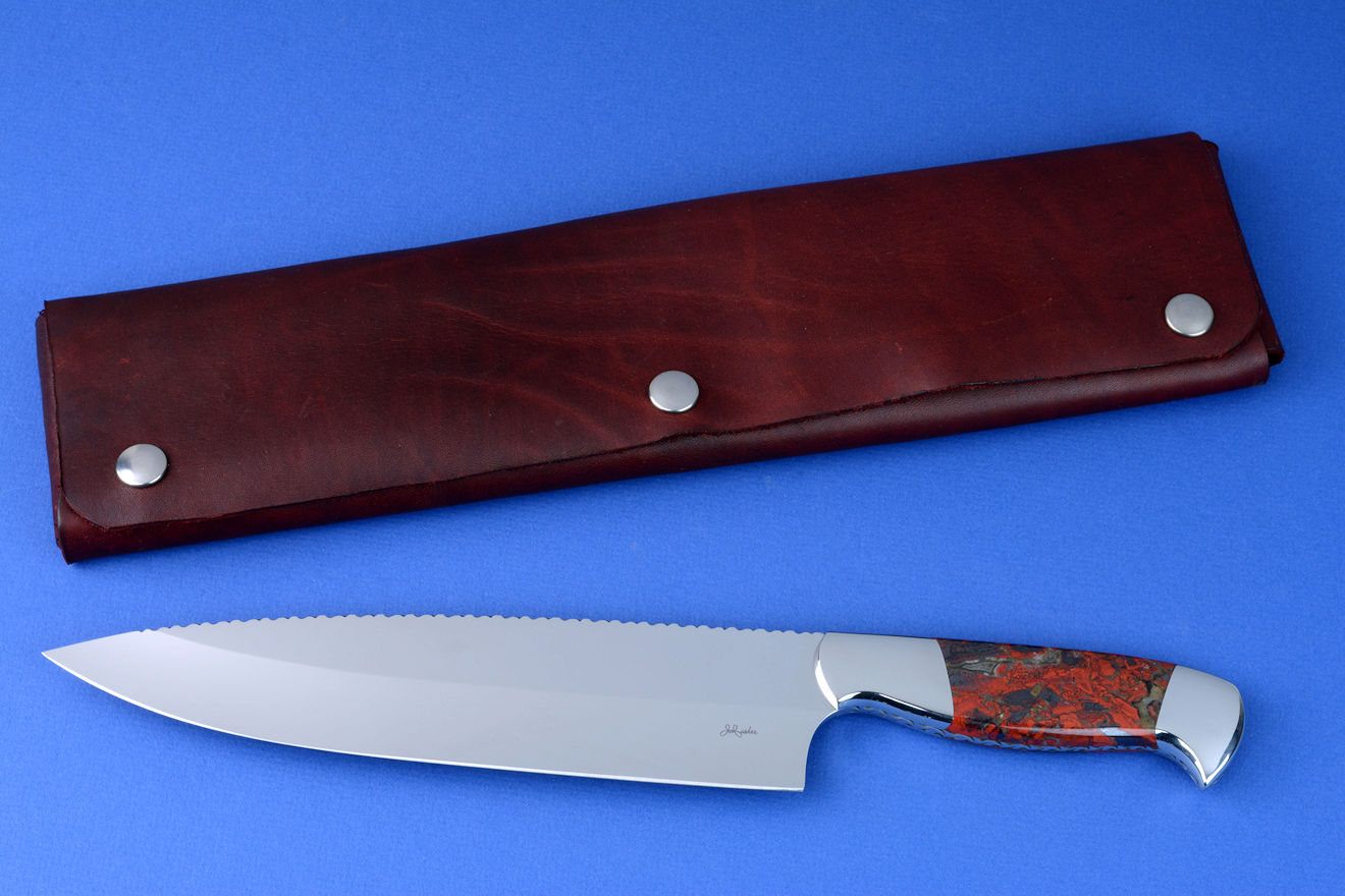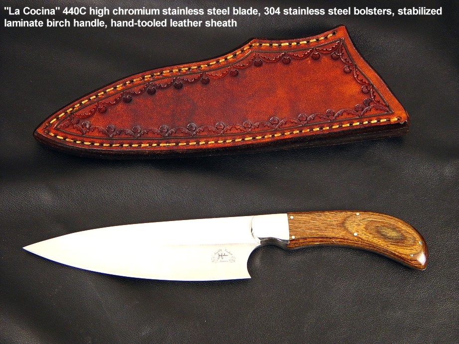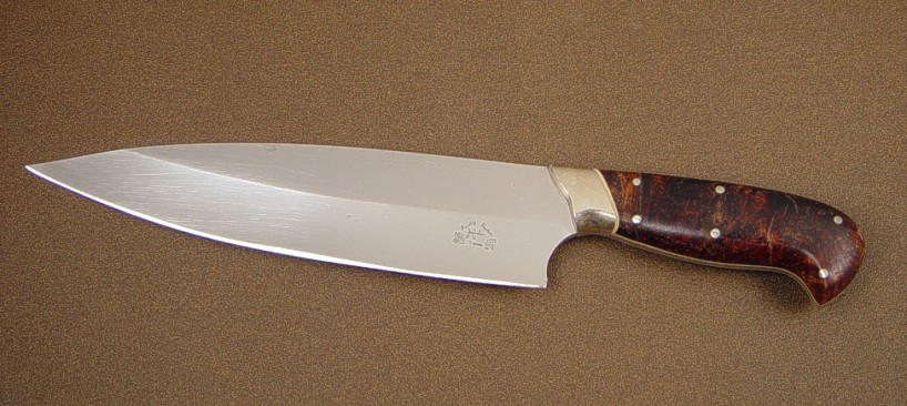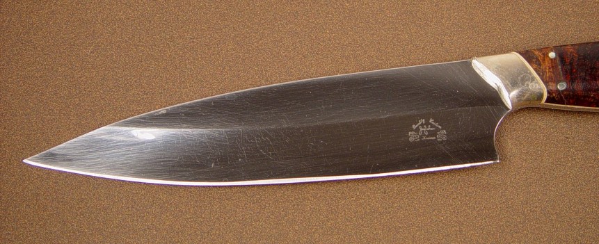 Since the knife is the central tool of the cooking experience, it is important to be knowledgeable and well-informed about chef's knives. Thankfully, we also have refined our information technology to a high degree, and more detailed, specific and clear information is available from worthwhile sources to more people than has ever been available before in history. Right now, you are reading this because of refined information technology. The interpretation, direction, specifics, and art of knives is now available from metals artists and craftsmen like myself for anyone to see, at any time, in the privacy and time frame of their own personal choosing. I feel very lucky and thankful that you are reading this now, and want you to know that I have a great deal to offer based on my own practice, experience, and art in this field. I consider it an obligation and responsibility of the service aspect to my clients, my trade, and my art.