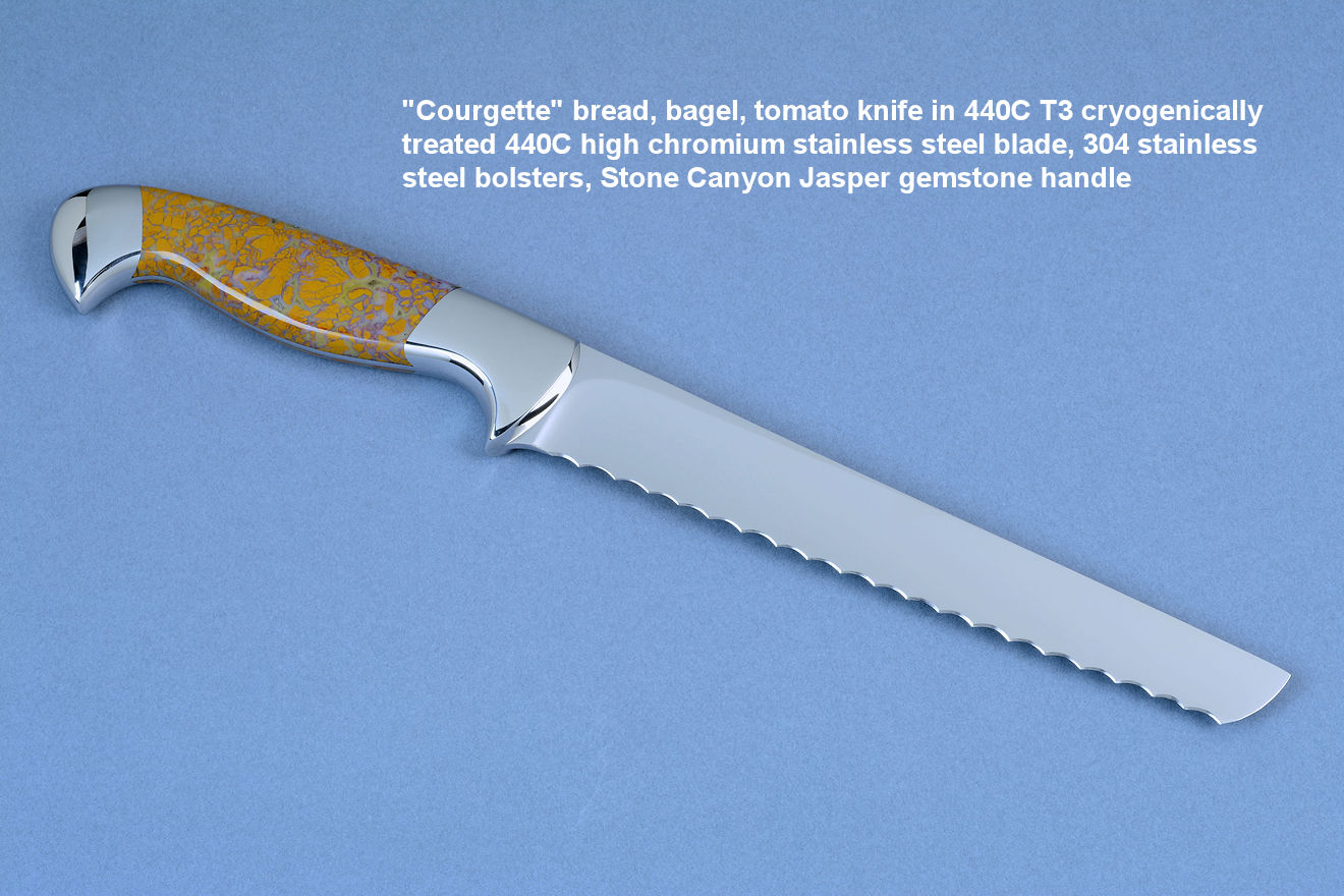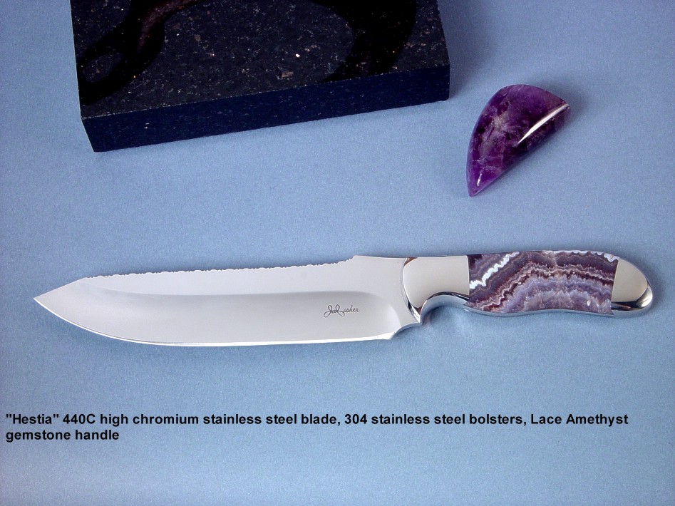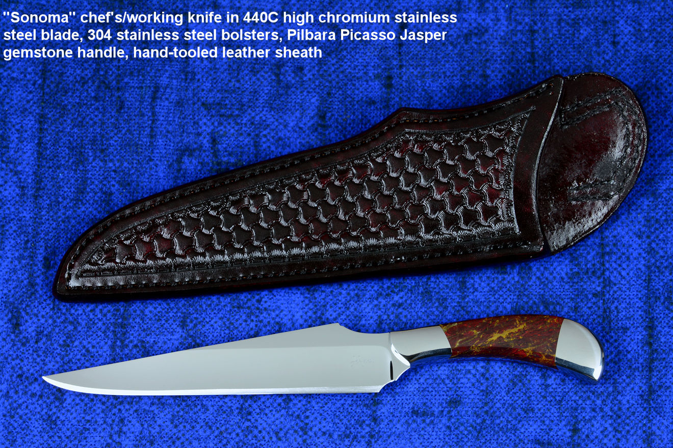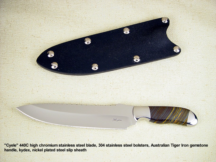 Since the knife is the central tool of the cooking experience, it is important to be knowledgeable and well-informed about chef's knives. Thankfully, we also have refined our information technology to a high degree, and more detailed, specific and clear information is available from worthwhile sources to more people than has ever been available before in history. Right now, you are reading this because of refined information technology. The interpretation, direction, specifics, and art of knives is now available from metals artists and craftsmen like myself for anyone to see, at any time, in the privacy and time frame of their own personal choosing. I feel very lucky and thankful that you are reading this now, and want you to know that I have a great deal to offer based on my own practice, experience, and art in this field. I consider it an obligation and responsibility of the service aspect to my clients, my trade, and my art.