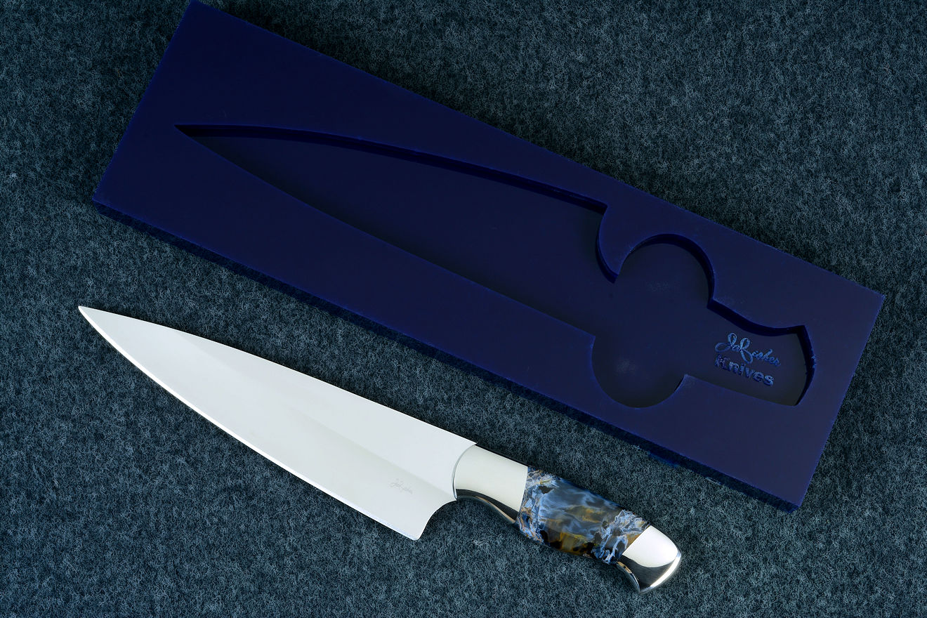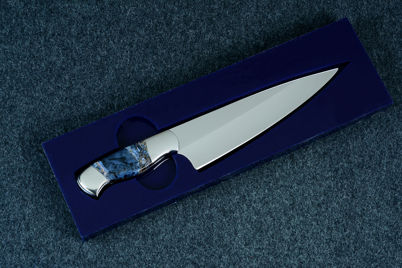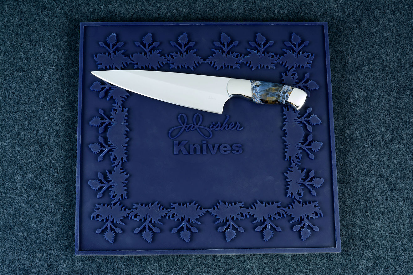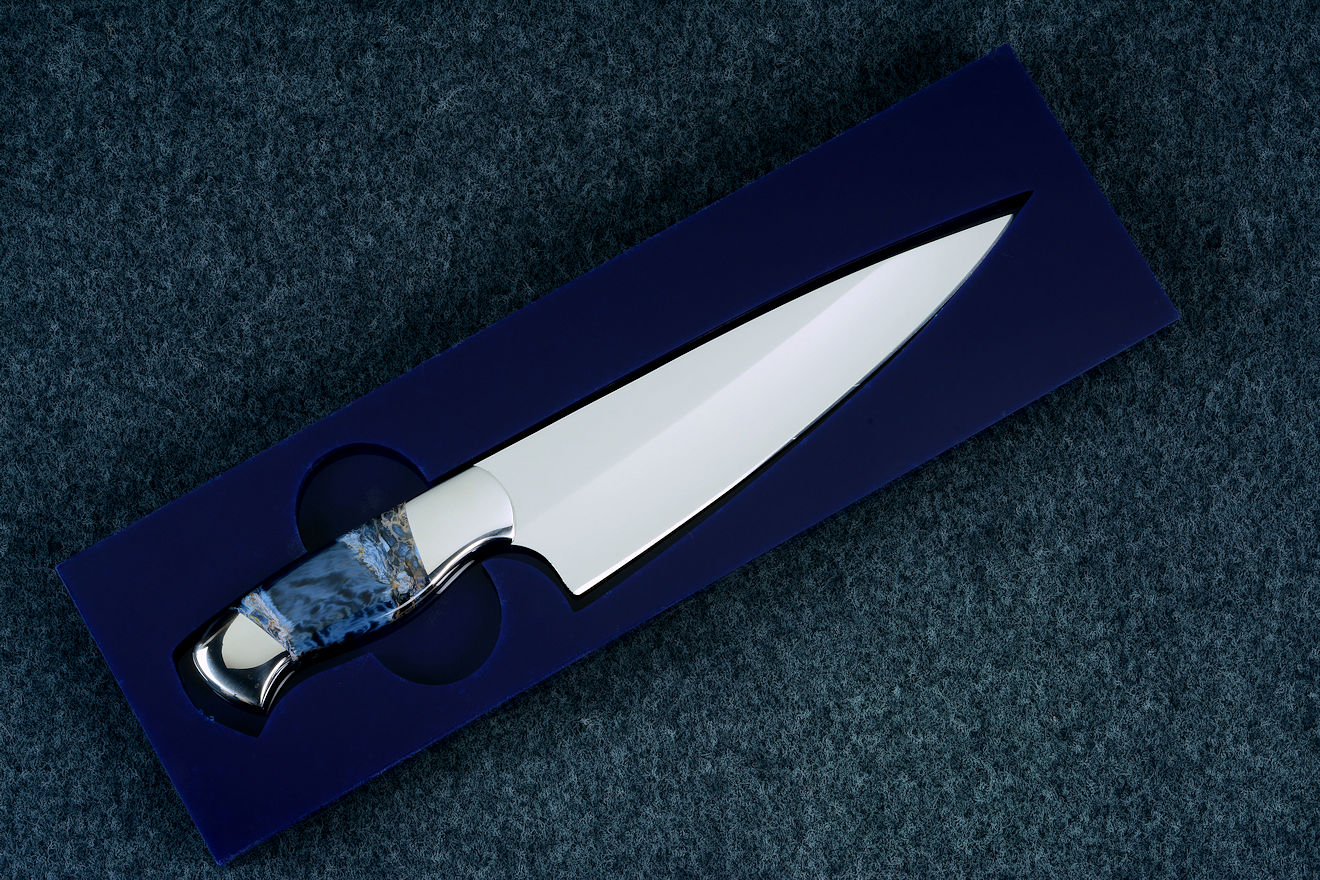 My Philosophy of my chef's knives is unique. While every individual maker may say that his works and philosophy about the knives he creates is exclusive, I actually detail these specific distinctions on this very page, and on the 600 other pages on this very website for all to see. There is no mystery about why I make the knives I do or how I do it, I believe this field should be modern, transparent, evolving, and inviting to all who are interested in fine knives. One could boil down this philosophy quite simply: I am a full time professional knife maker, artist, and writer who does my very best to create the finest modern handmade knife and work of art for each individual client.