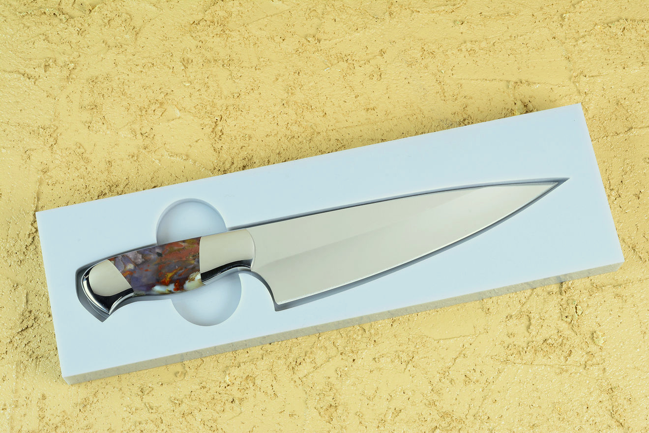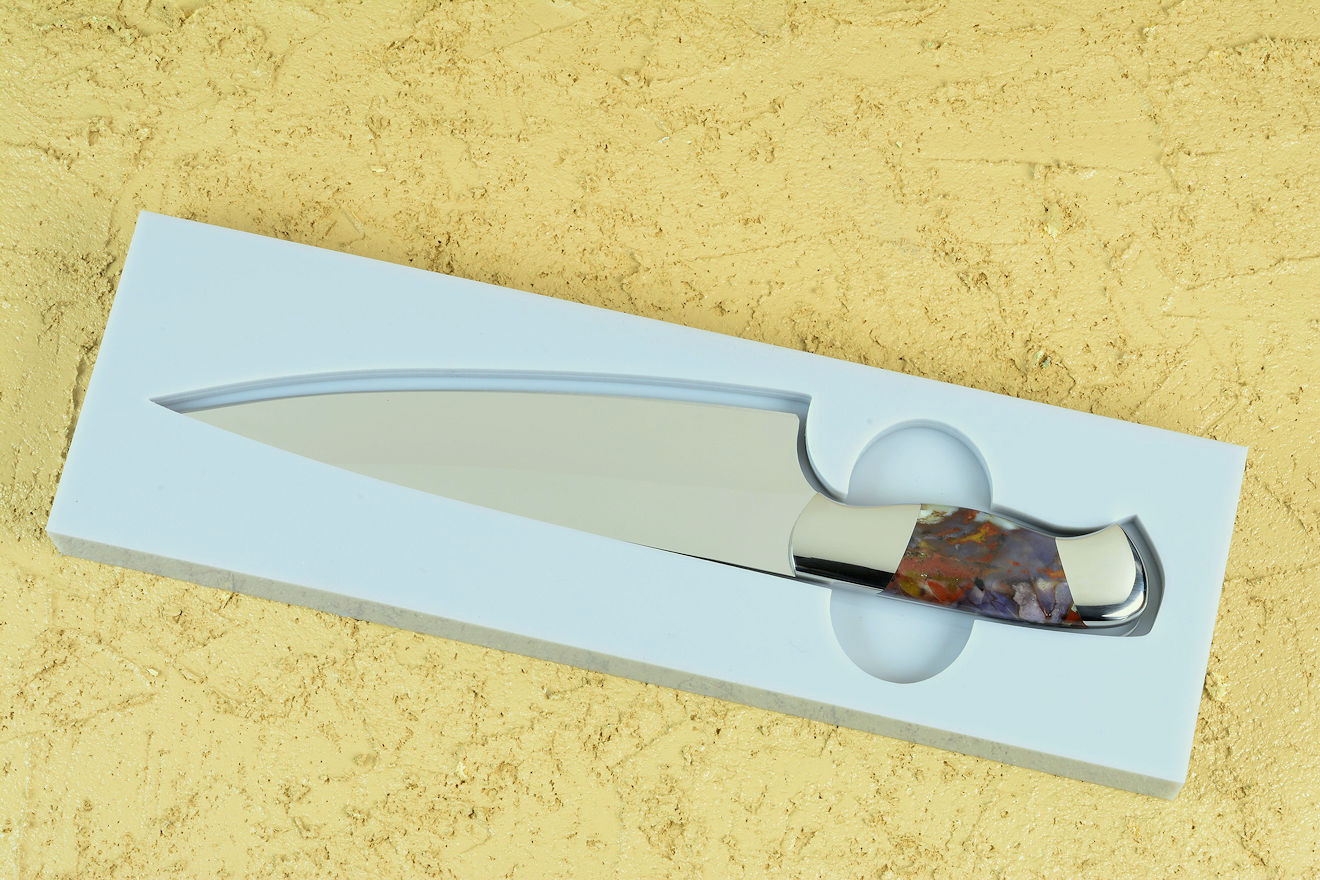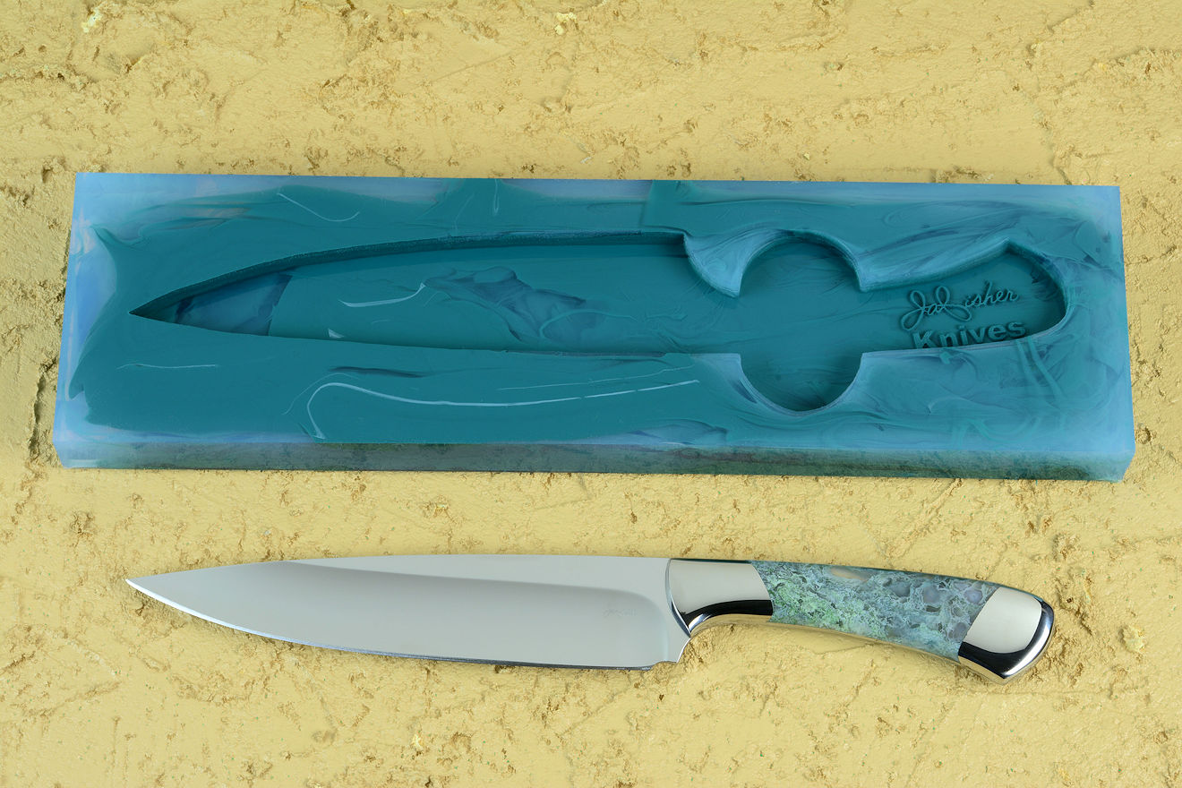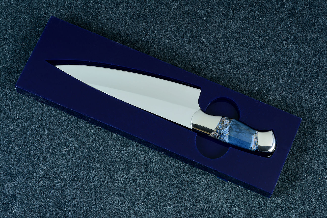 My Philosophy of my chef's knives is unique. While every individual maker may say that his works and philosophy about the knives he creates is exclusive, I actually detail these specific distinctions on this very page, and on the 600 other pages on this very website for all to see. There is no mystery about why I make the knives I do or how I do it, I believe this field should be modern, transparent, evolving, and inviting to all who are interested in fine knives. One could boil down this philosophy quite simply: I am a full time professional knife maker, artist, and writer who does my very best to create the finest modern handmade knife and work of art for each individual client.