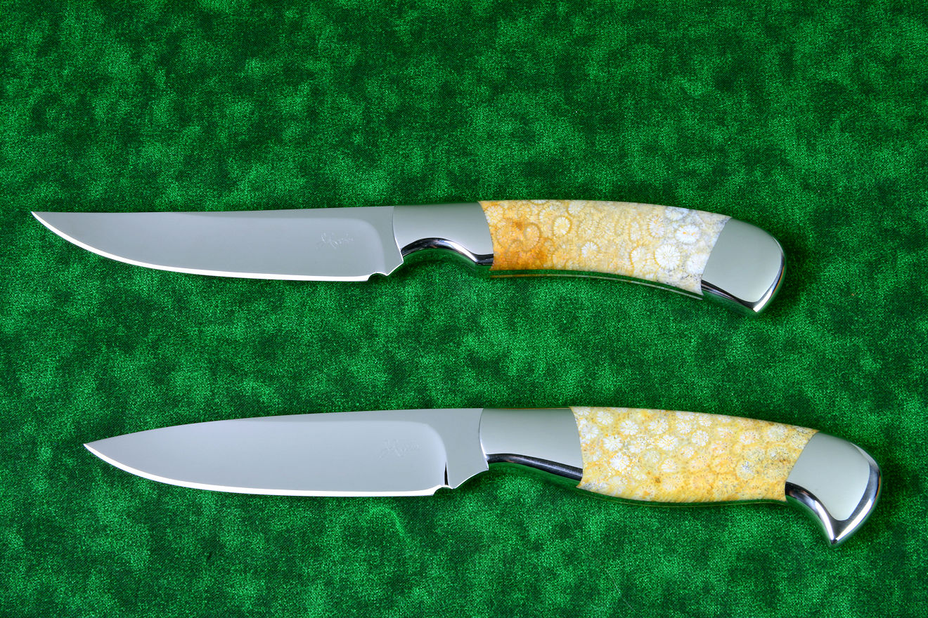 The difference between the work of a professional custom knifemaker and mass-marketed knives is fairly simple to determine, and it can be summed up in the phrase "Quality vs. Quantity." Because there is so much mass marketing hyperbole on the internet, on media sources, in print, on television, and in advertising generally, I've taken considerable time to illustrate what these differences are generally on my "Factory Knives vs. Fine Handmade Knives" page on this website.