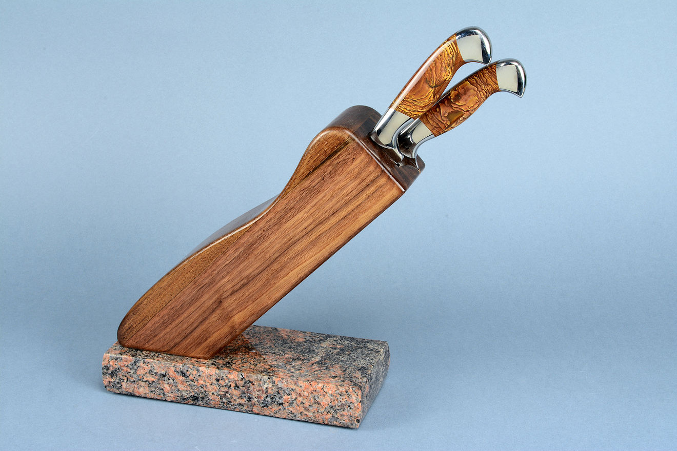 The prise is an entirely a new concept, one suited to just one individual knife, and molded around it. It's not a holder, block, stand, base, or rest!