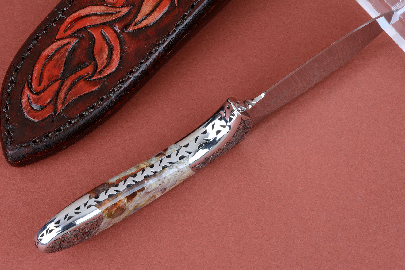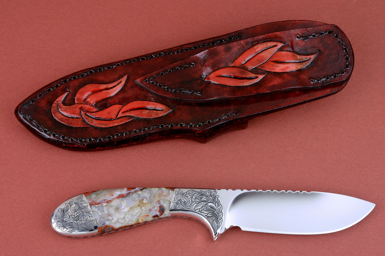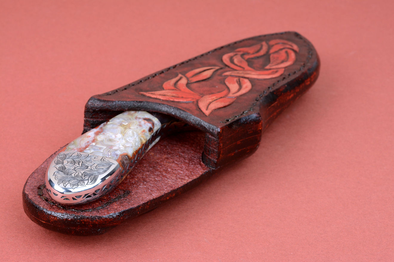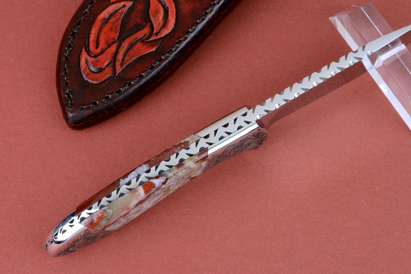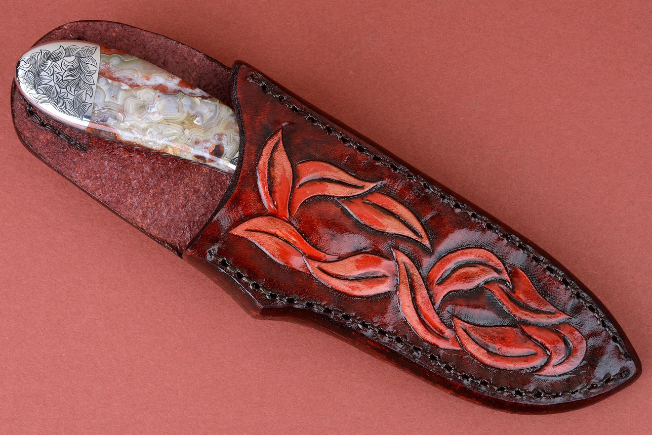 pattern in the sheath front, back, and belt loop, and hand-dyed the