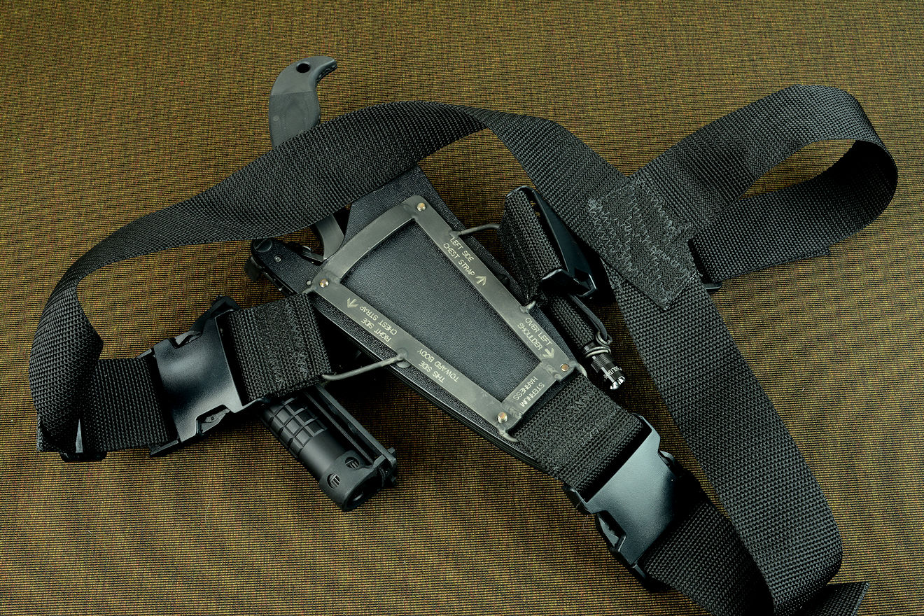 Additionally, I've made and included the complete set of modular sheath wear system components. This is absolutely the finest, most durable, most comprehensive and complete wear system made in the world today. The modular system allows complete and fast integration of the knife/sheath combination to be worn as an independent, quickly donned and doffed, integrated unit, made of the most durable materials possible. The wearer can quickly and easily switch between belt loop wear, wear at the sternum, handle down, or even wear behind the spine. Please see the linked videos listed below for complete instructions and wear applications of these devices.
