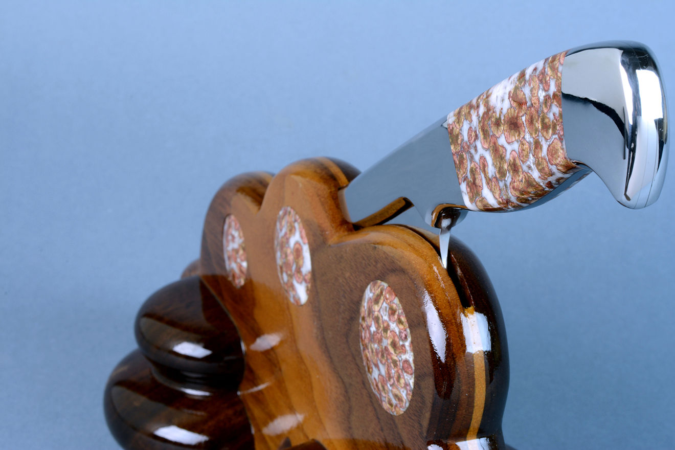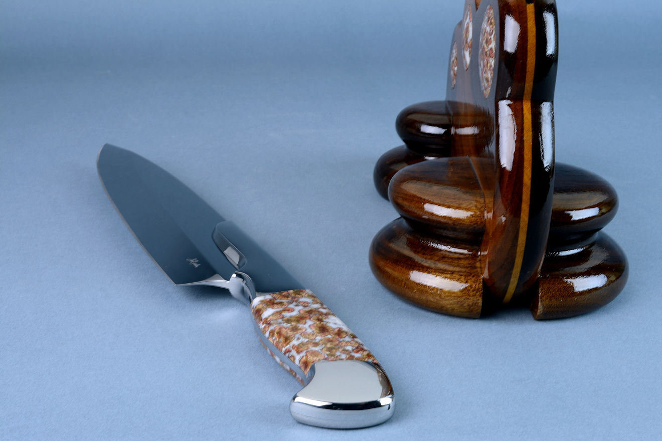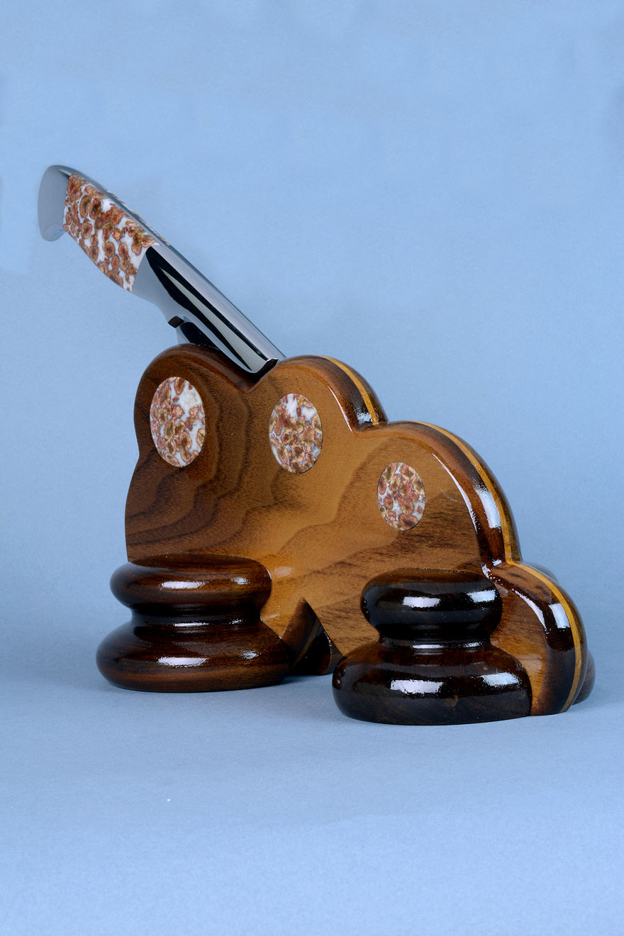 - Stand: A knife this substantial needed a commensurate stand, and for this unique