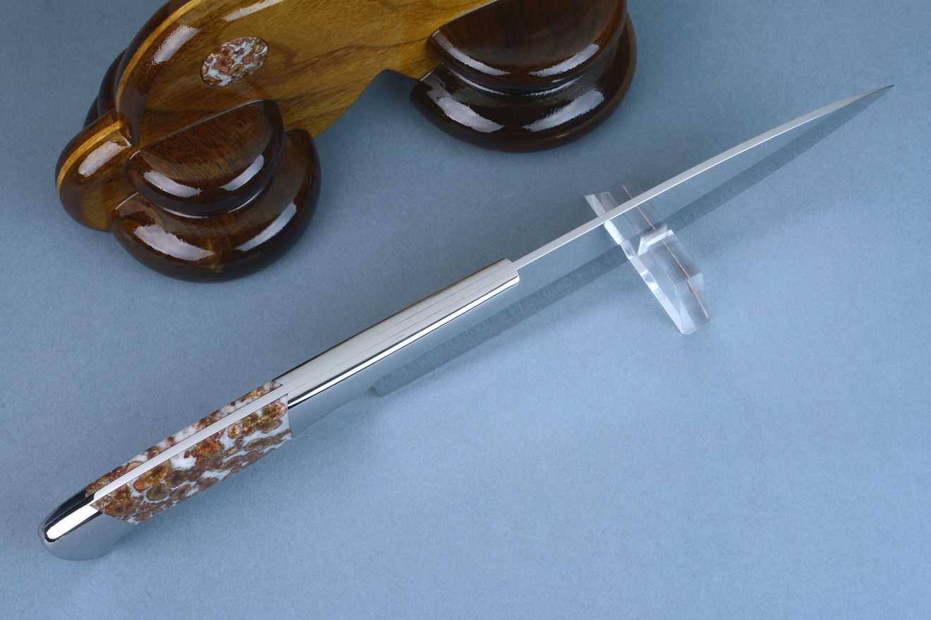 fully tapered for balance. The knife is bolstered with zero-care 304