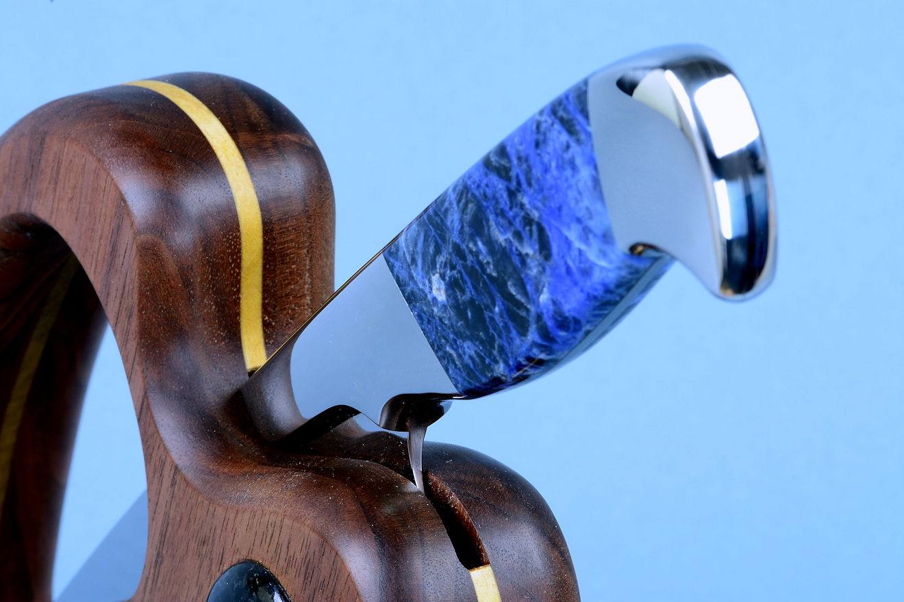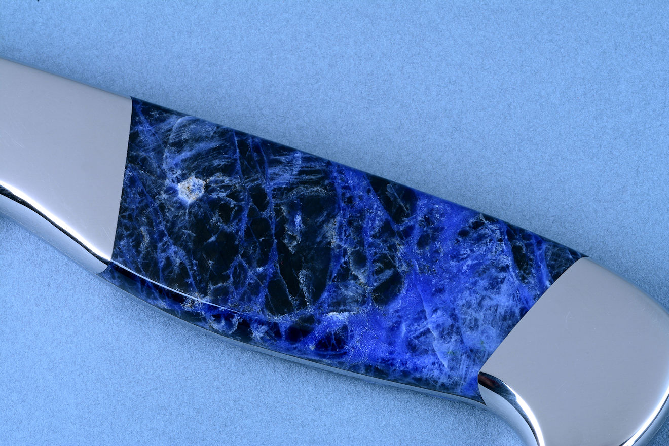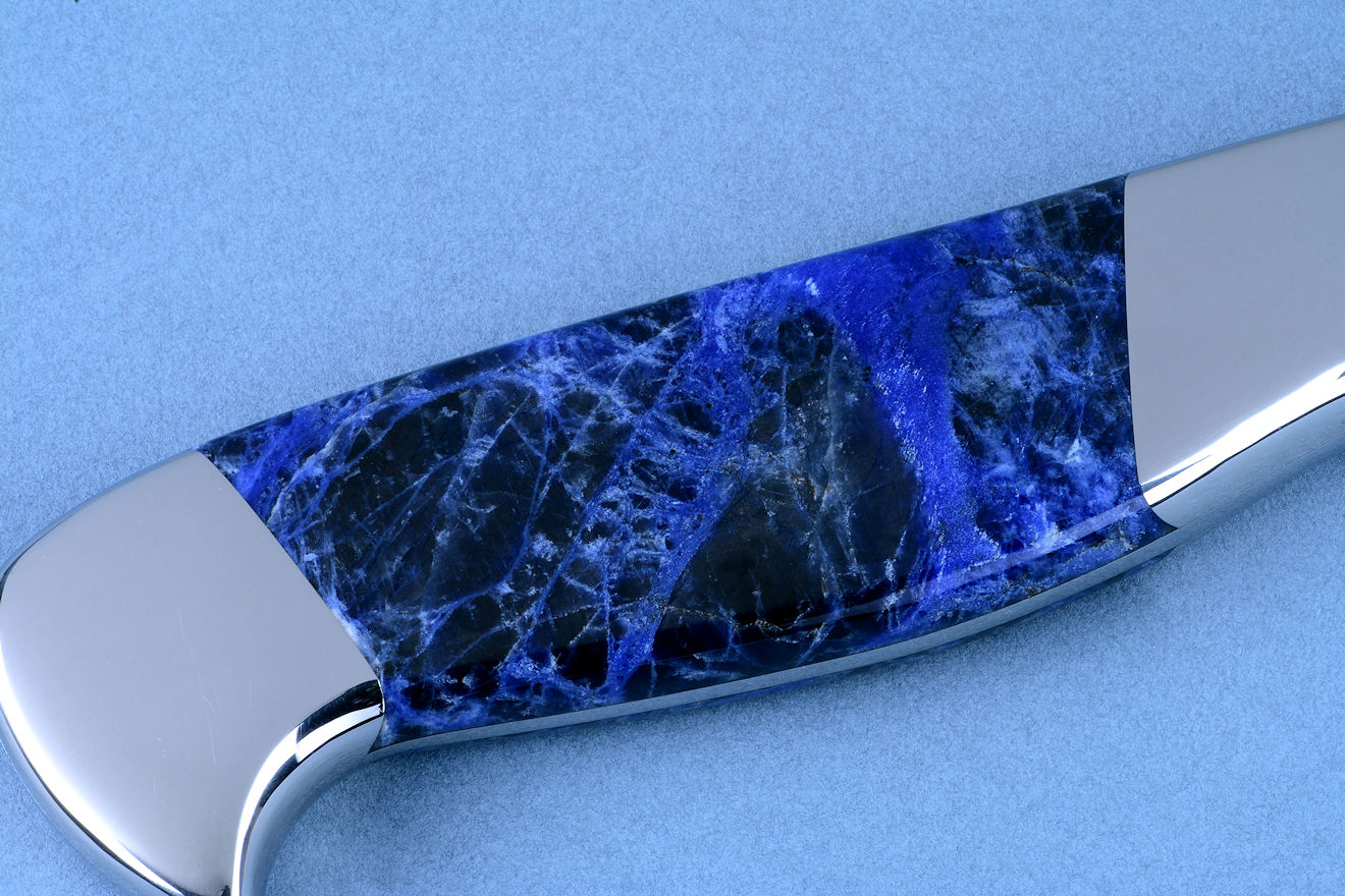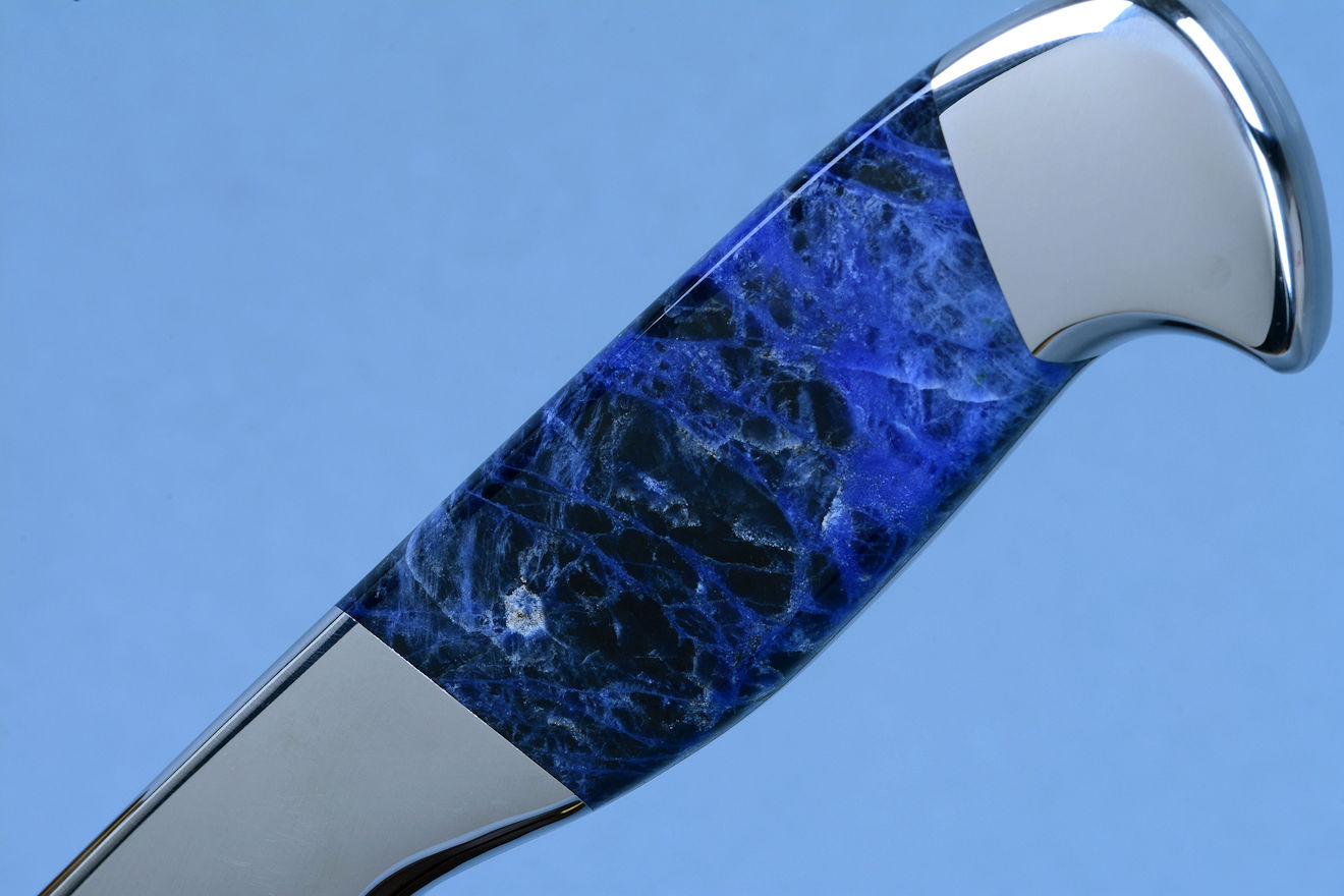 Sodalite gemstone knife handle. The design has water-splash shapes,