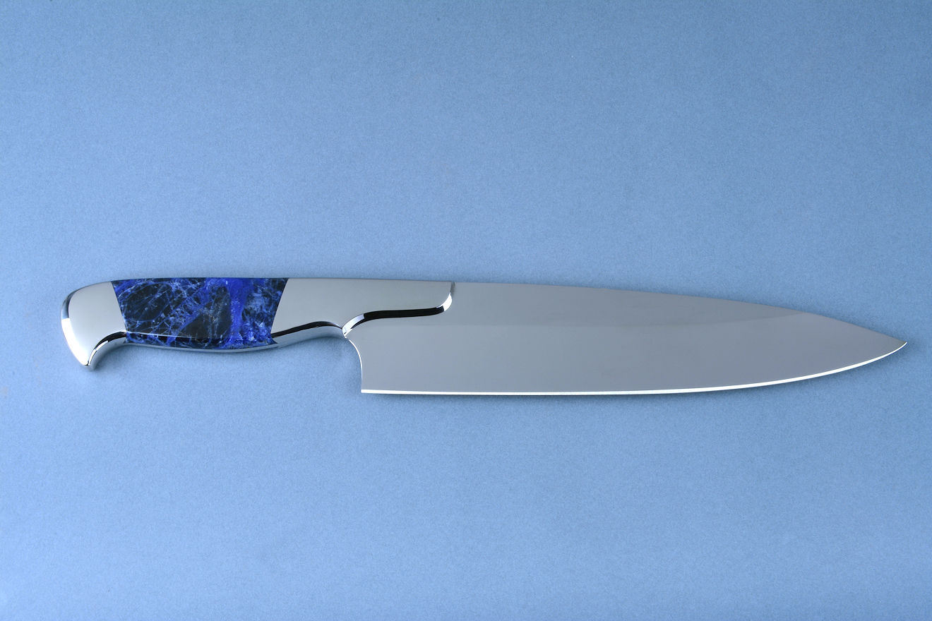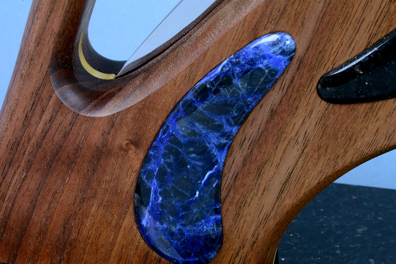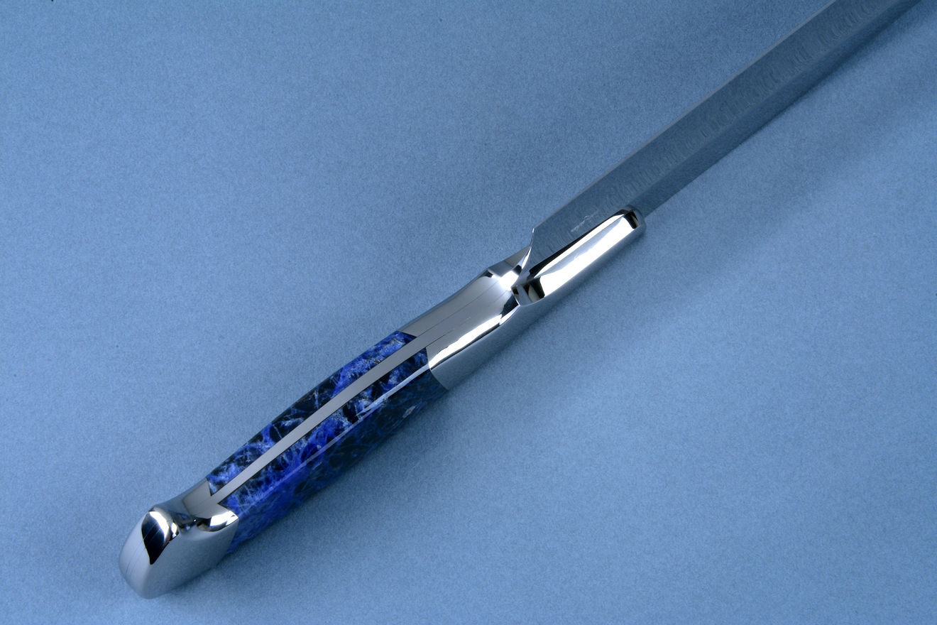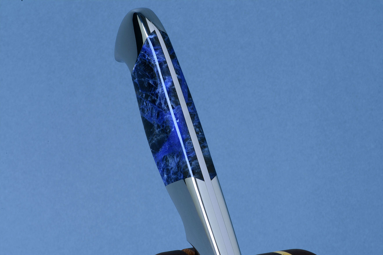 Sodalite gemstone knife handle. The design has water-splash shapes,