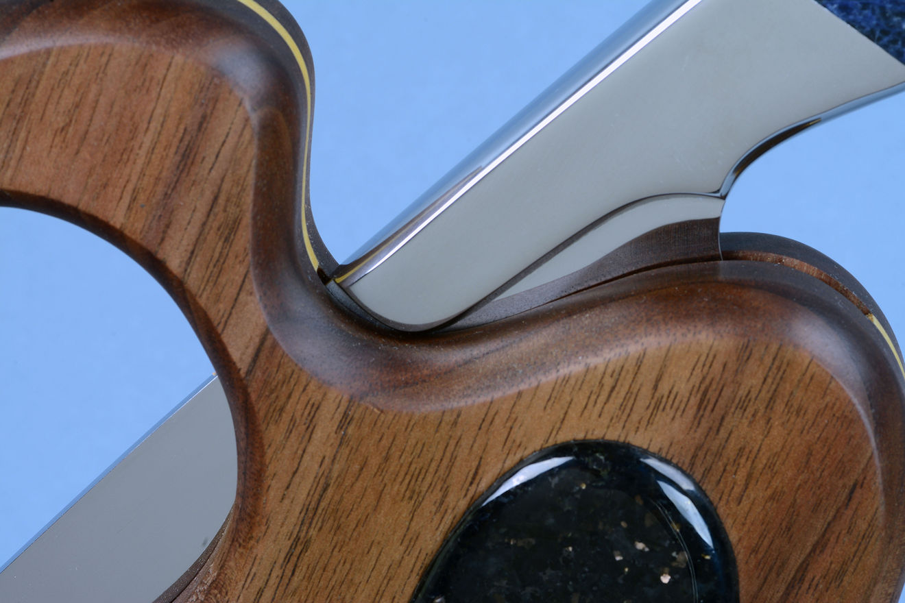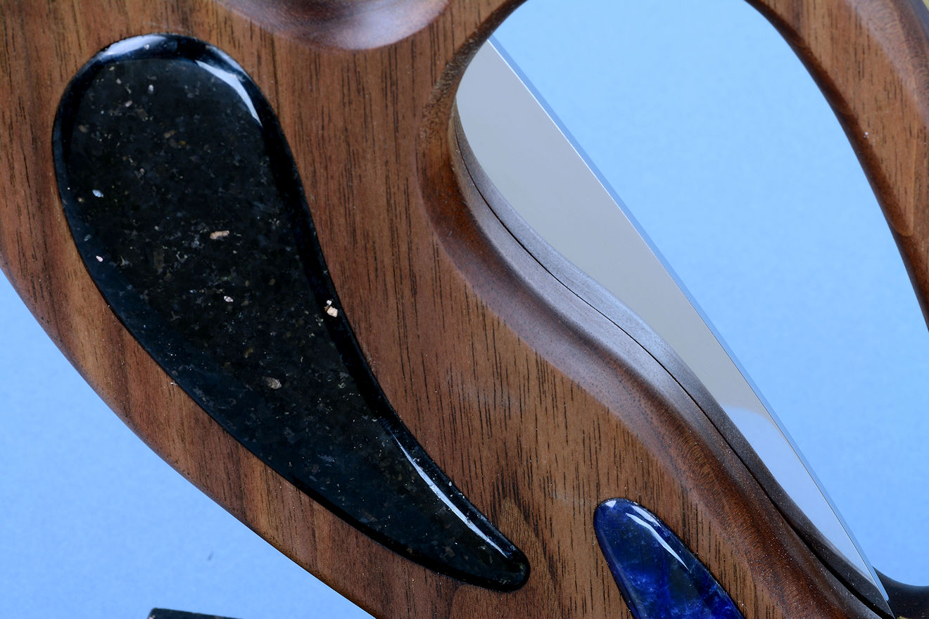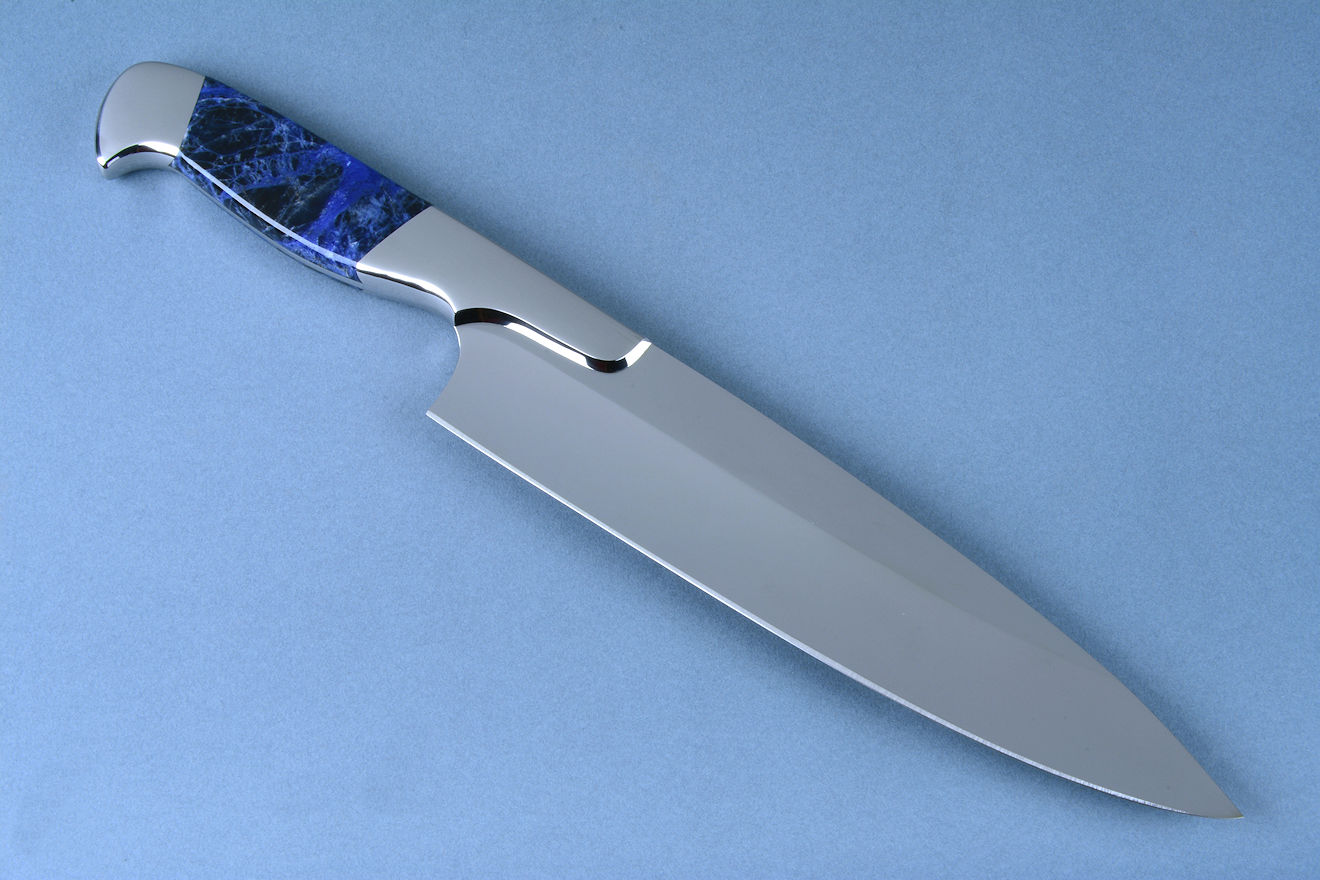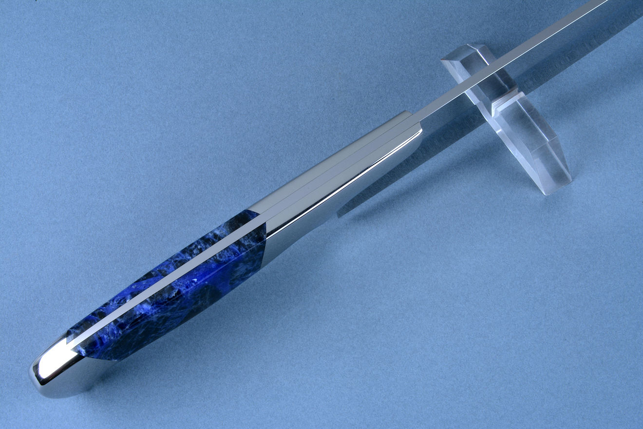 Sodalite gemstone knife handle. The design has water-splash shapes,