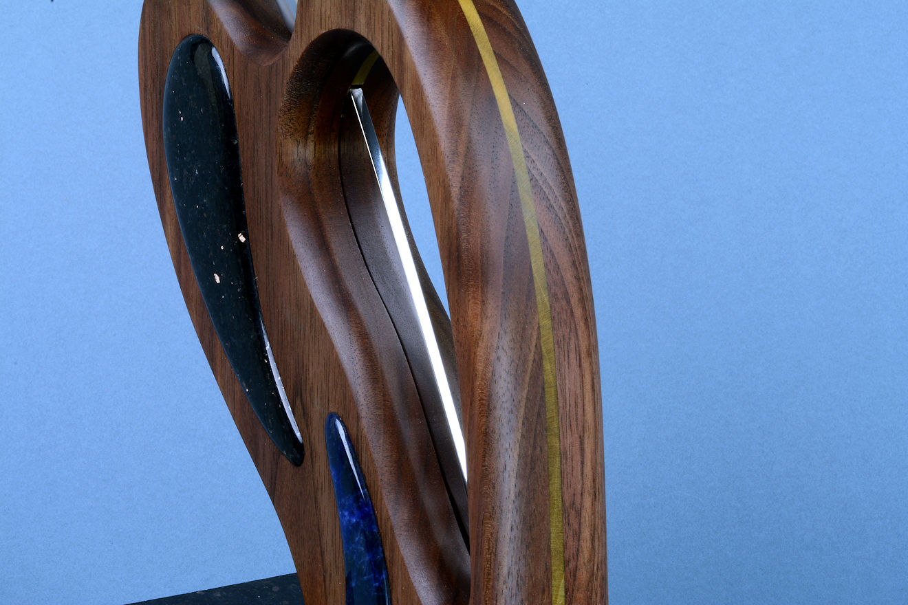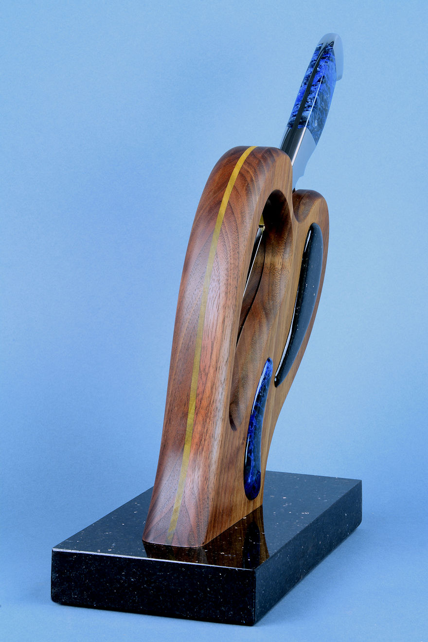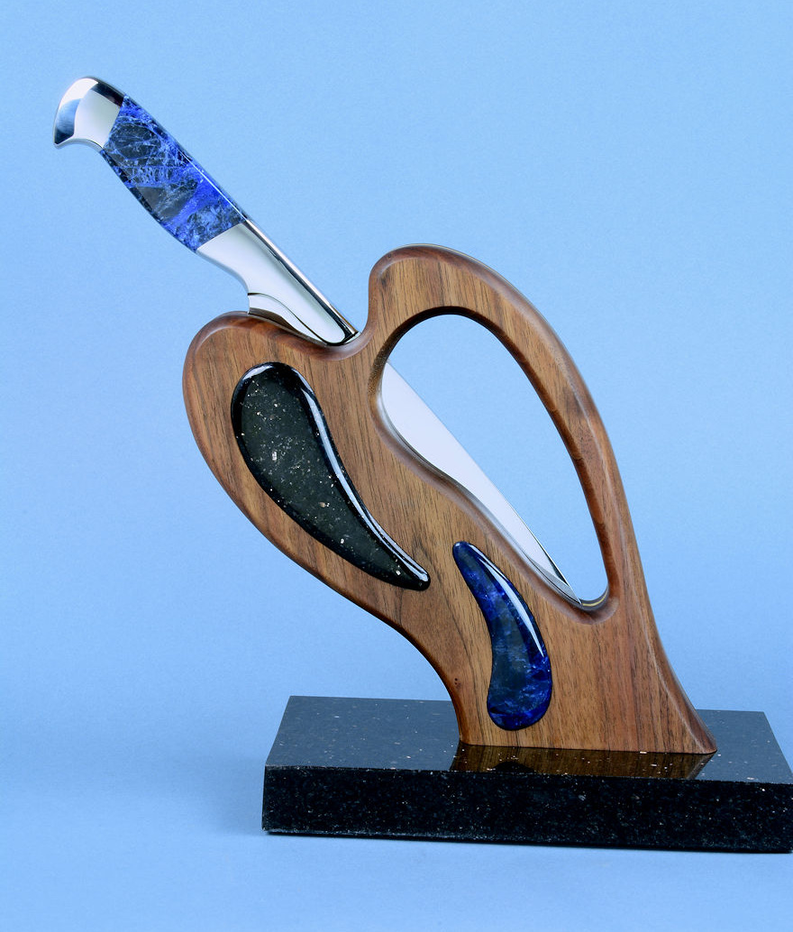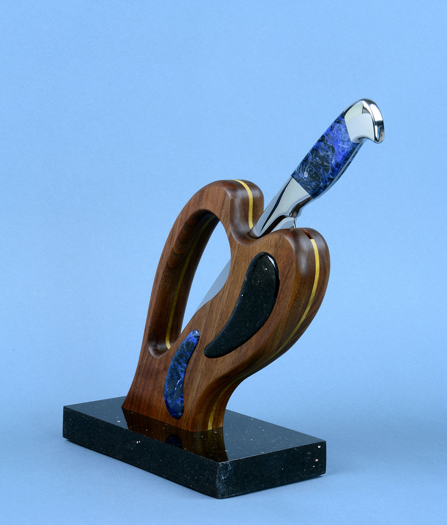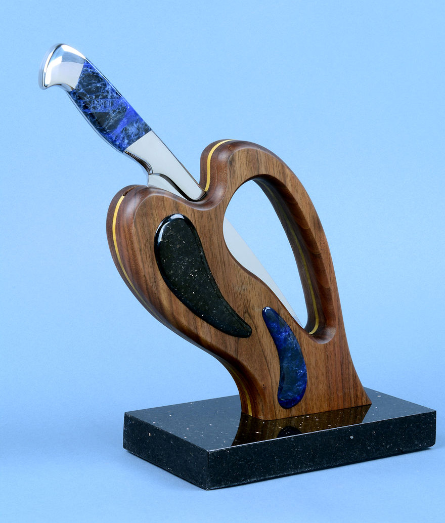 Sodalite gemstone knife handle. The design has water-splash shapes,